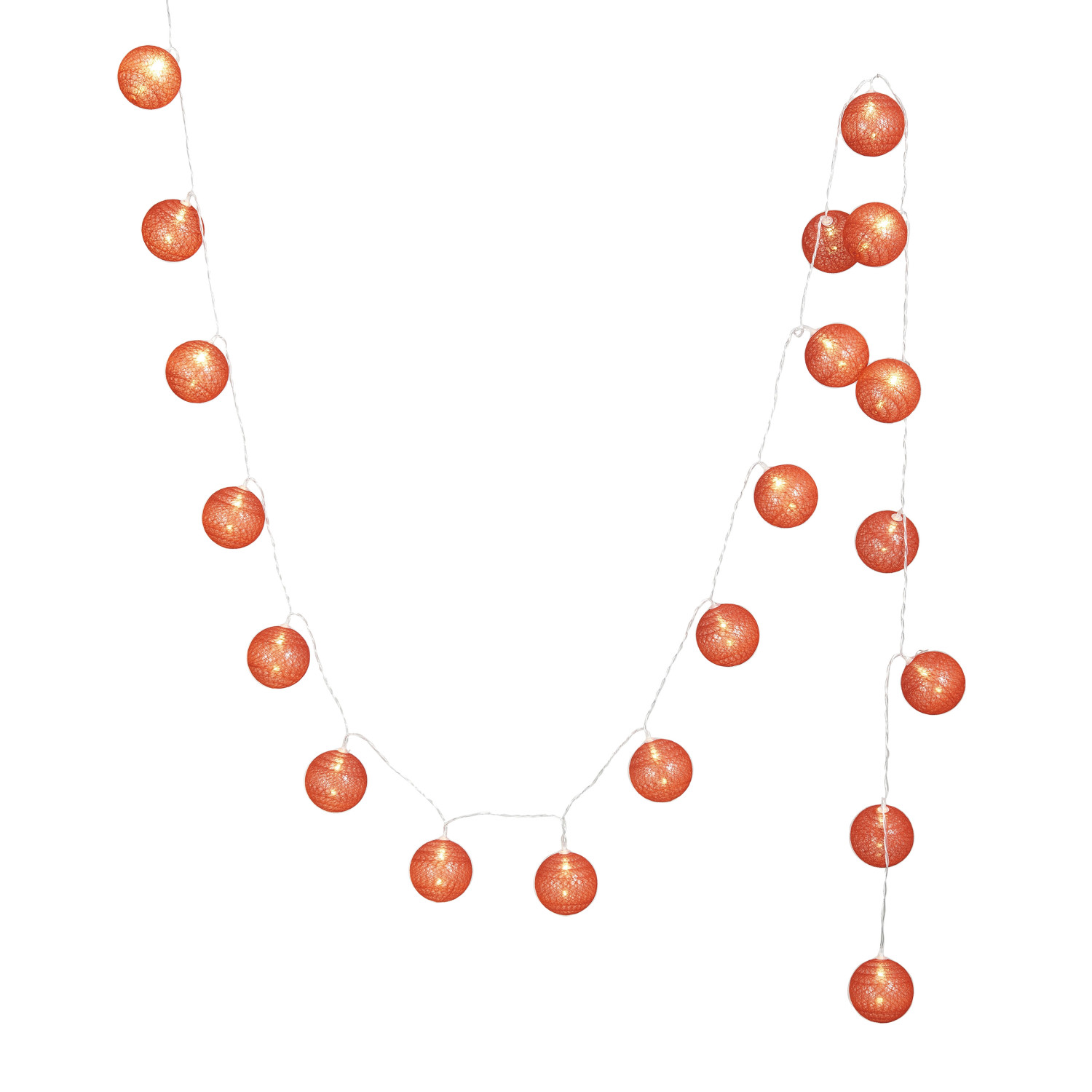 This set of fabric string ball lights with a plastic cord and 20 lights in burgundy is a colorful and fun piece that will brighten up any space. The string lights' various colors create a joyful and happy ambiance. Fabric string balls give texture and flair to the string lights, producing a magnificent and distinctive display. 20 LED lights give shine to the string lights, making them stunning. A battery-operated construction makes the string lights easy to hang and move, making any display straightforward. The string lights are made of polycarbonate, polyester, and LED light, with a soft and flexible quality. They are easy to clean and maintain. The string lights measure 118 inches in length and 2.25 inches in height. This is a versatile and stylish piece that can be displayed in the bedroom, living room, or party. It is a playful piece to add some light and whimsy to the space. A colorful and fun set of fabric string ball lights with plastic cord and 20 lights in burgundy. A playful piece to add some light and whimsy to the bedroom, living room, or party. Requires 2-pcs AA batteries.