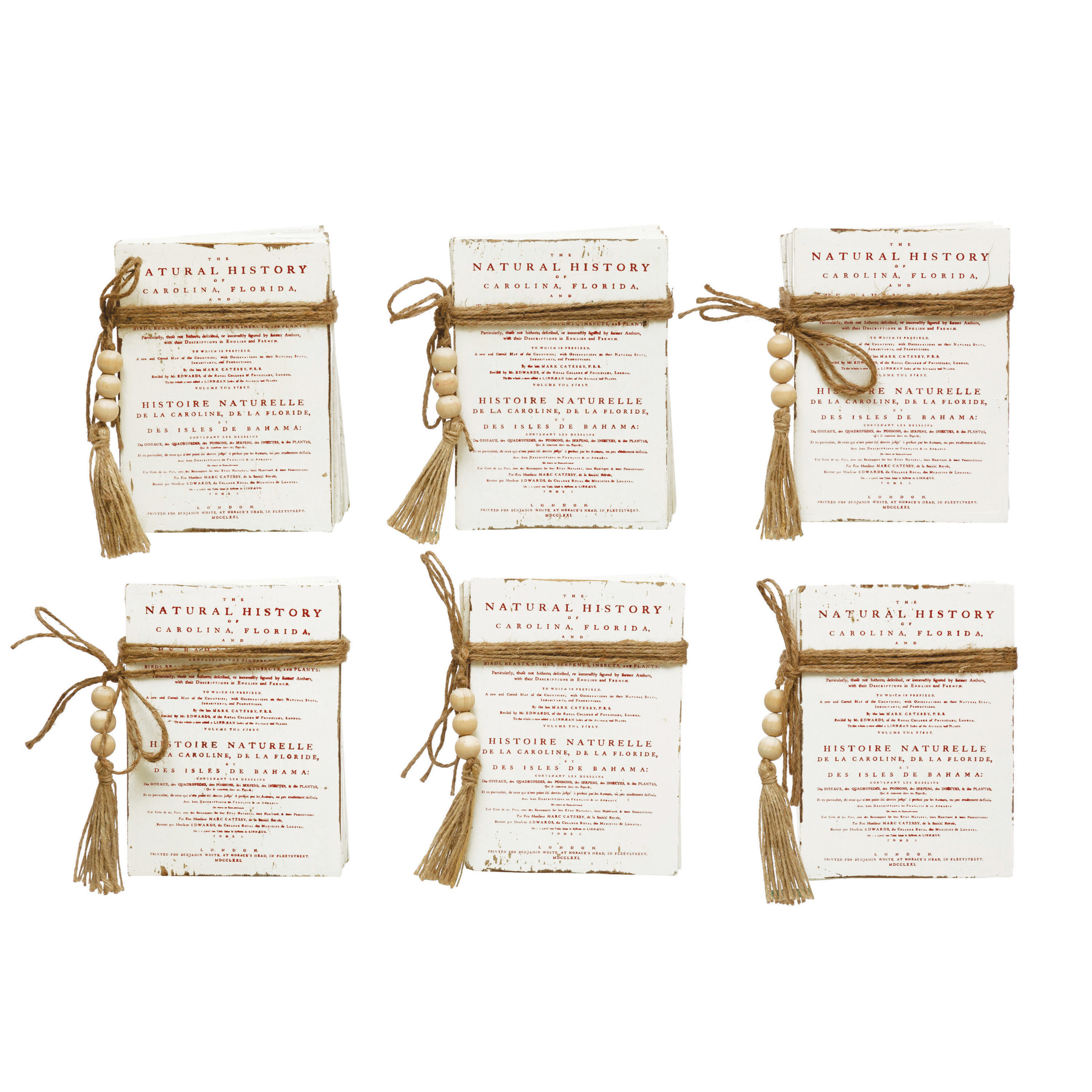 Catalog Name: 8-1/2"L x 6-1/4"W x 3-3/4"H Wood Block Faux Books w/ Holiday Saying, Wood Beads & Jute Tie, White & Red, 6 Styles
