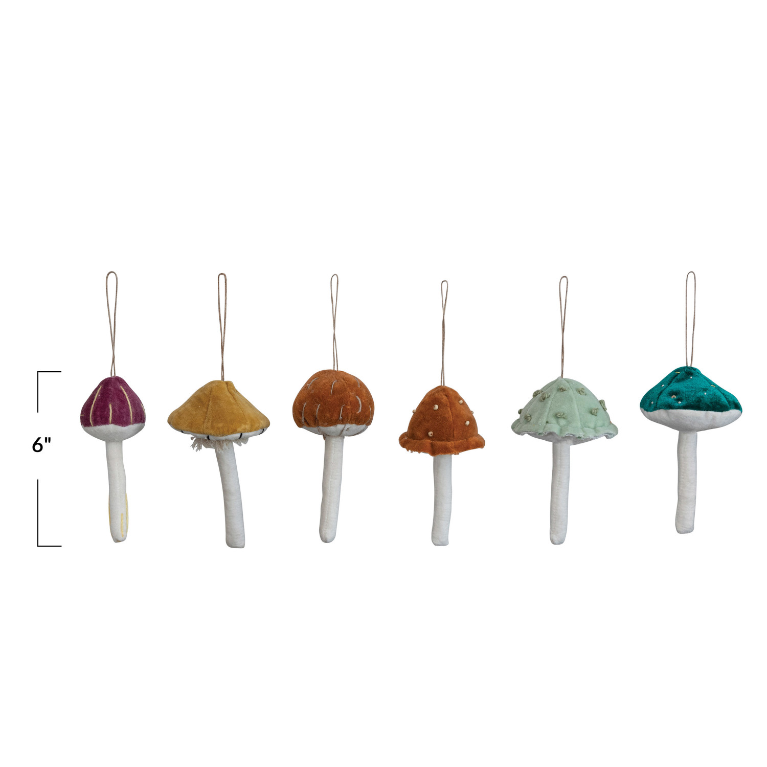 6"H Cotton Velvet Mushroom Ornament w/ Embroidery & French Knots, Multi Color, 6 Styles