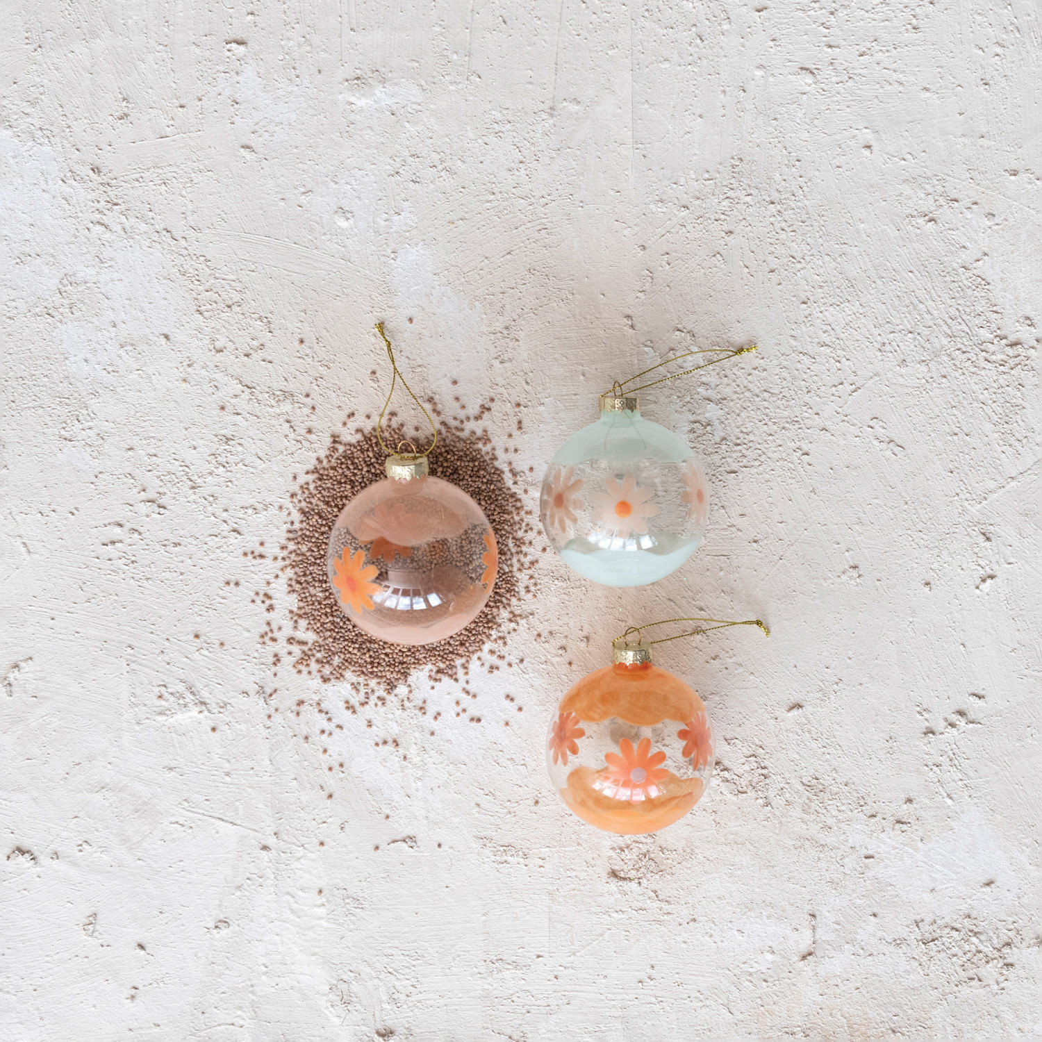Hand-Painted Glass Ball Ornament w/ Flowers, 3 Styles