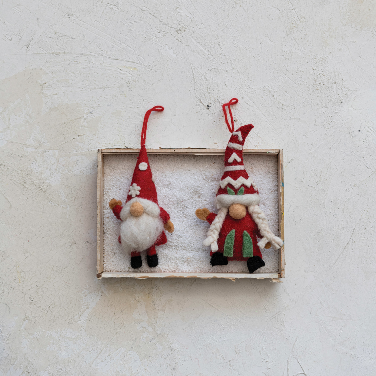 Catalog Name: 7"H Handmade Wool Felt Gnome Ornament w/ Applique, Multi Color, 2 Styles