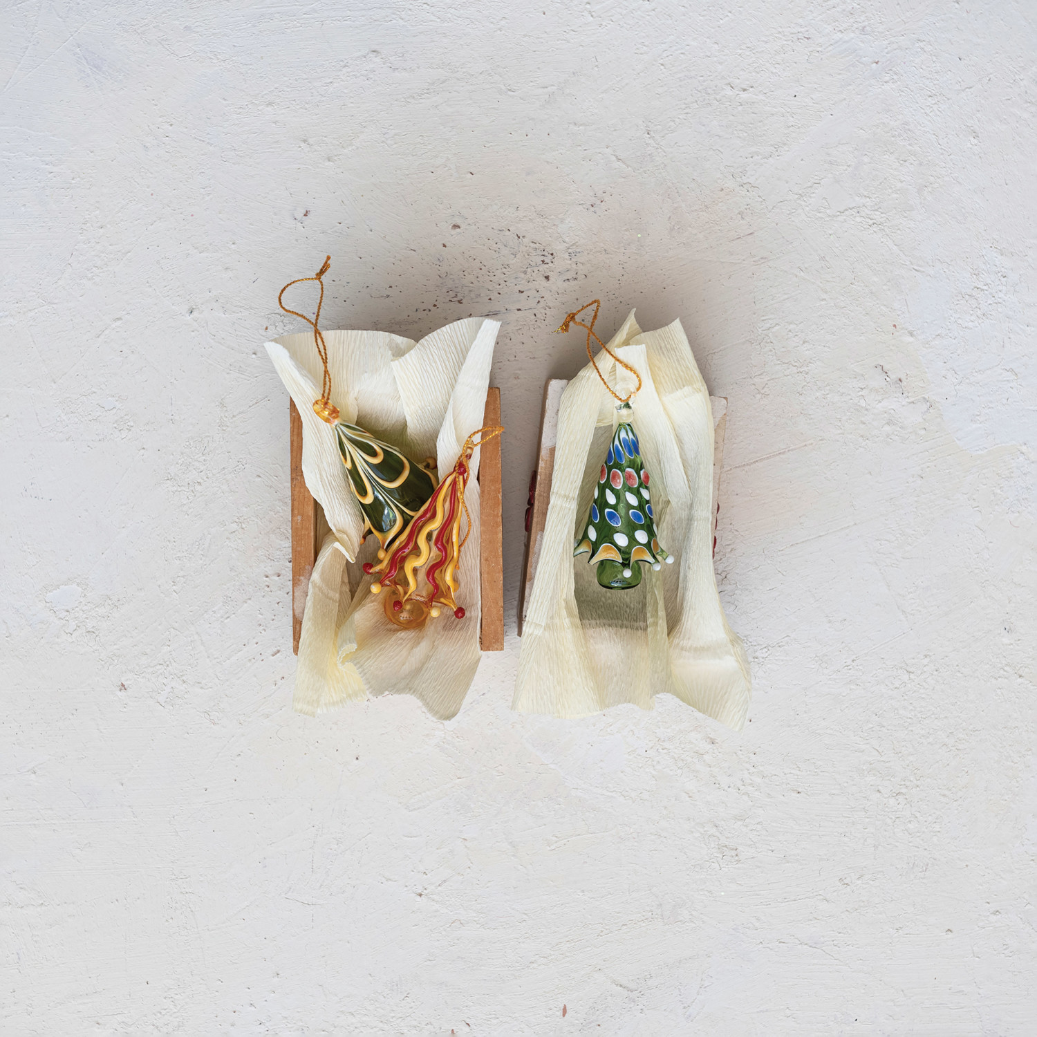 Catalog Name: 3"H Handmade Glass Tree Ornament, Multi Color, 3 Styles