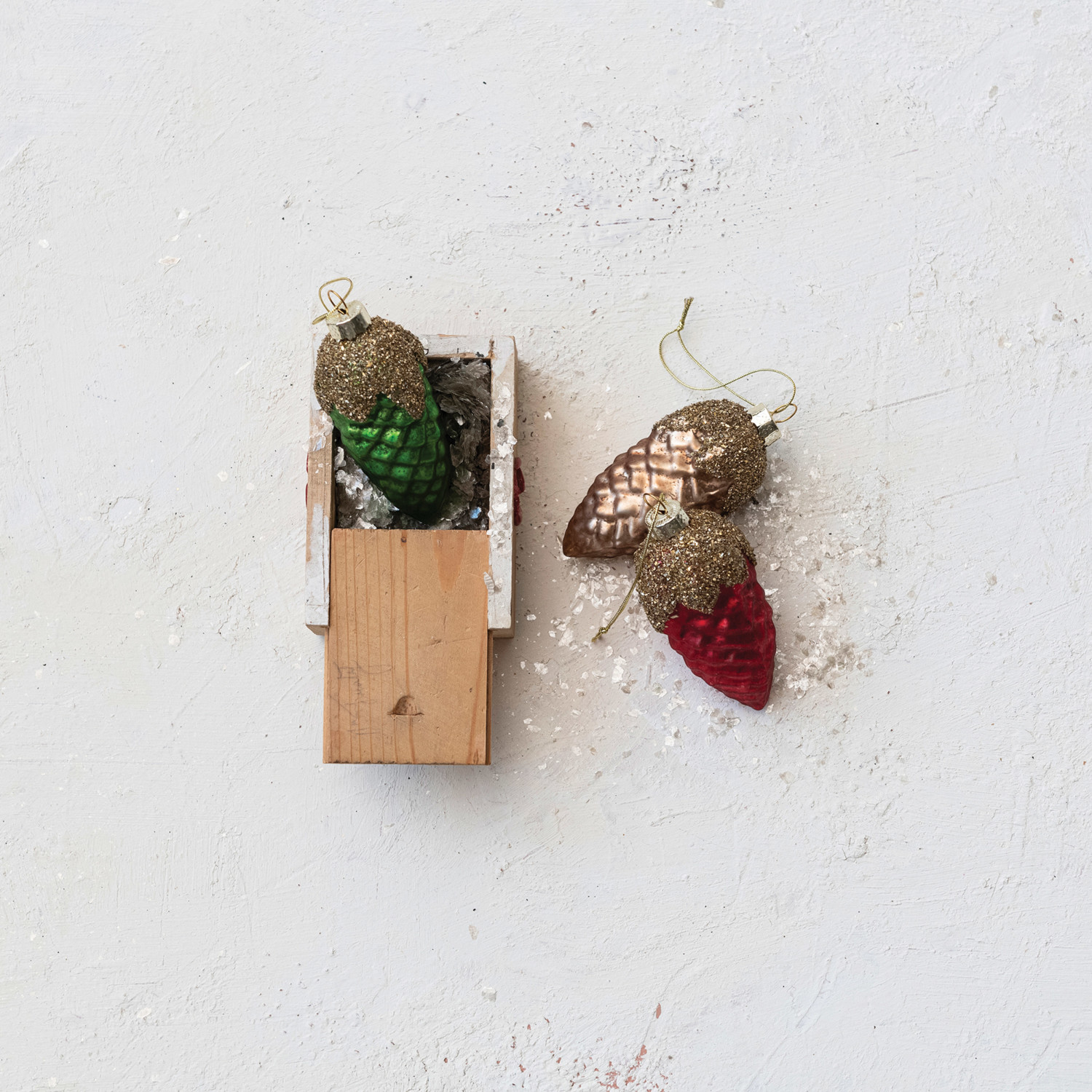 Glass Pinecone Ornament w/ Glitter, 3 Colors