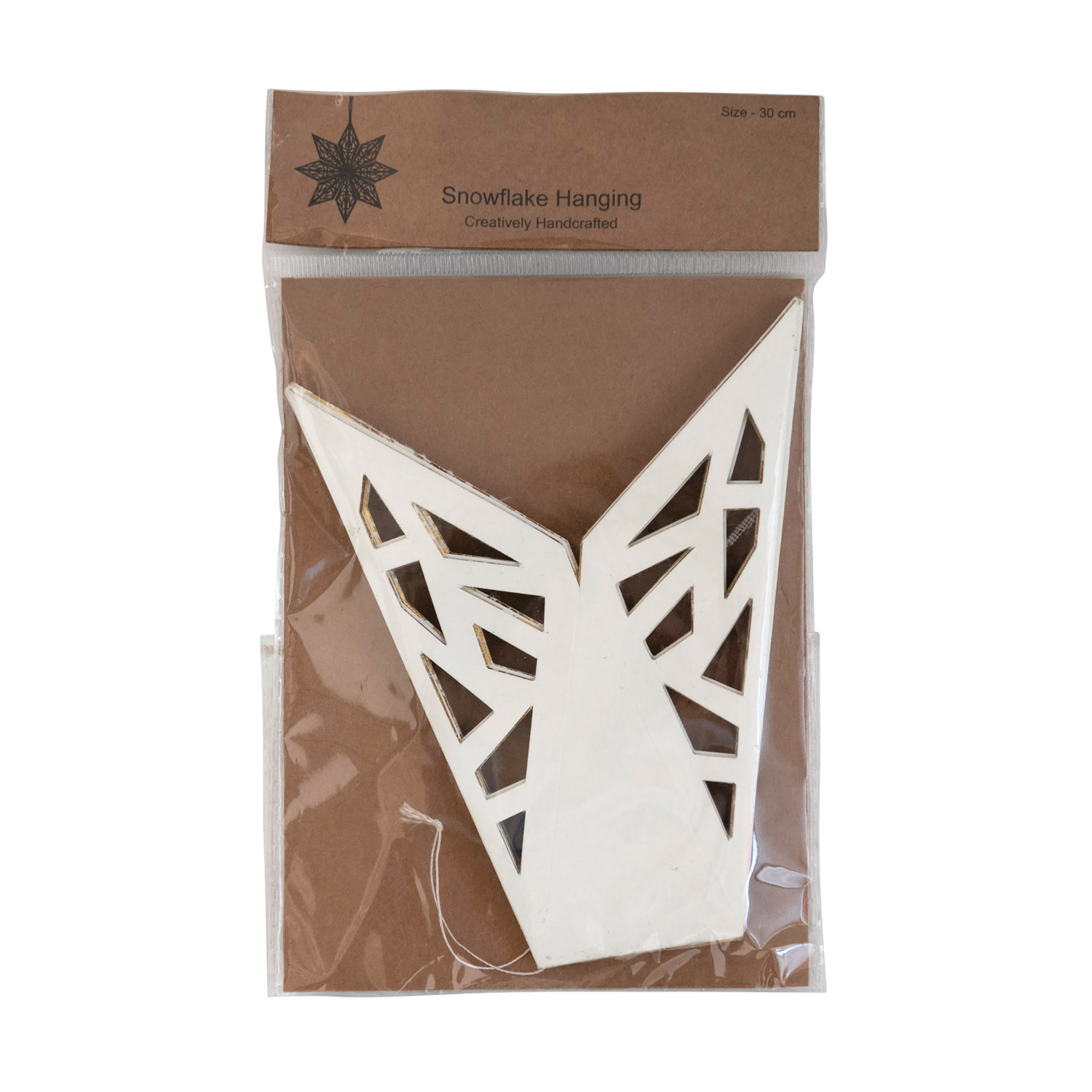 White paper snowflake ornament; Add to a seasonal display for a dash of whimsical holiday charm; Made from 95% Paper, 4. 5% Magnet, . 5% Thread. Add to a seasonal display for a dash of whimsical holiday charm.
