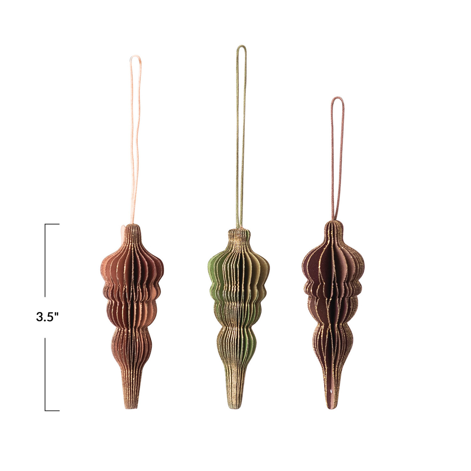 Handmade Recycled Paper Folding Honeycomb Finial Ornament w/ Gold Glitter, 3 Colors