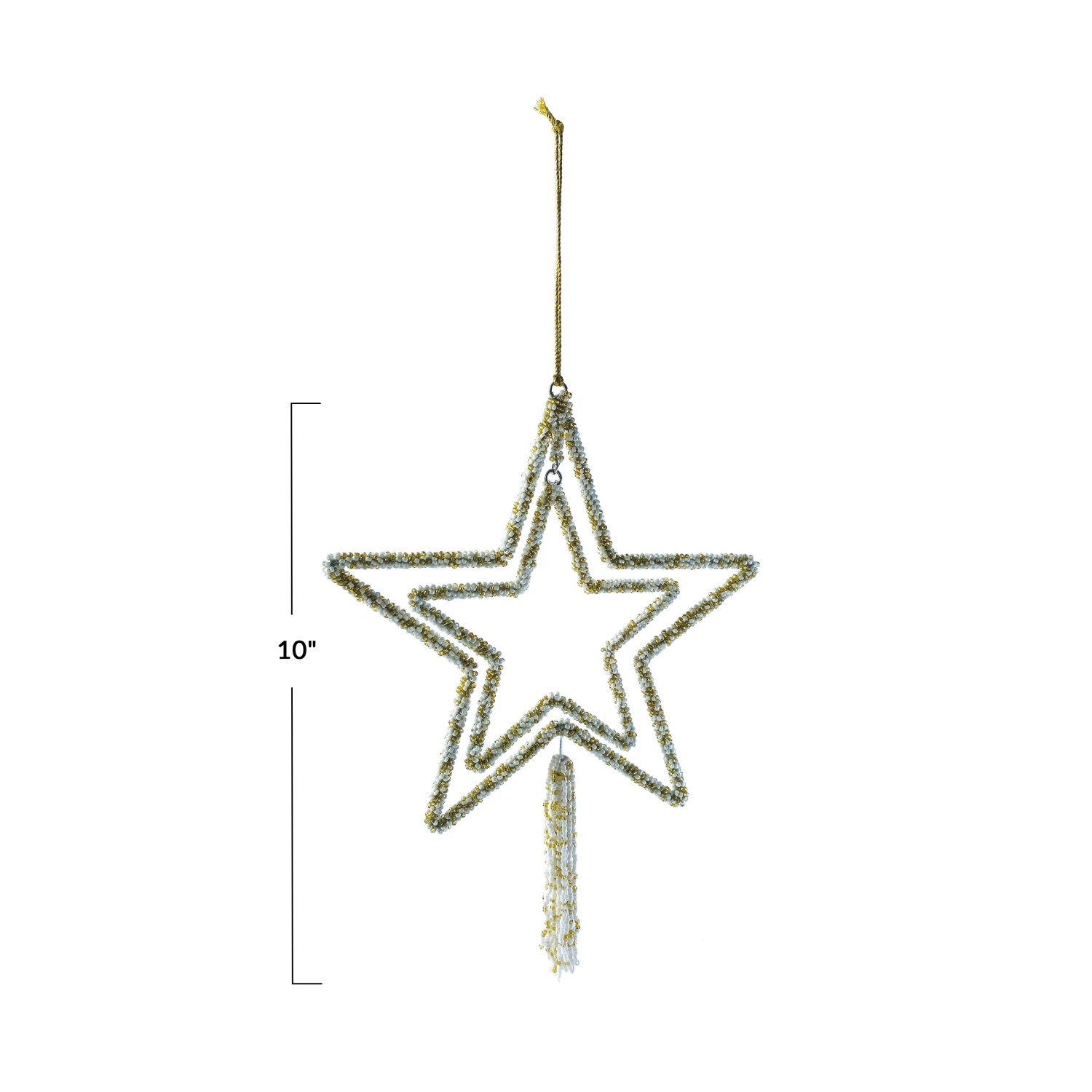 Catalog Name: 10"H Glass Beaded Metal Star Ornament w/ Tassel, White & Gold Finish