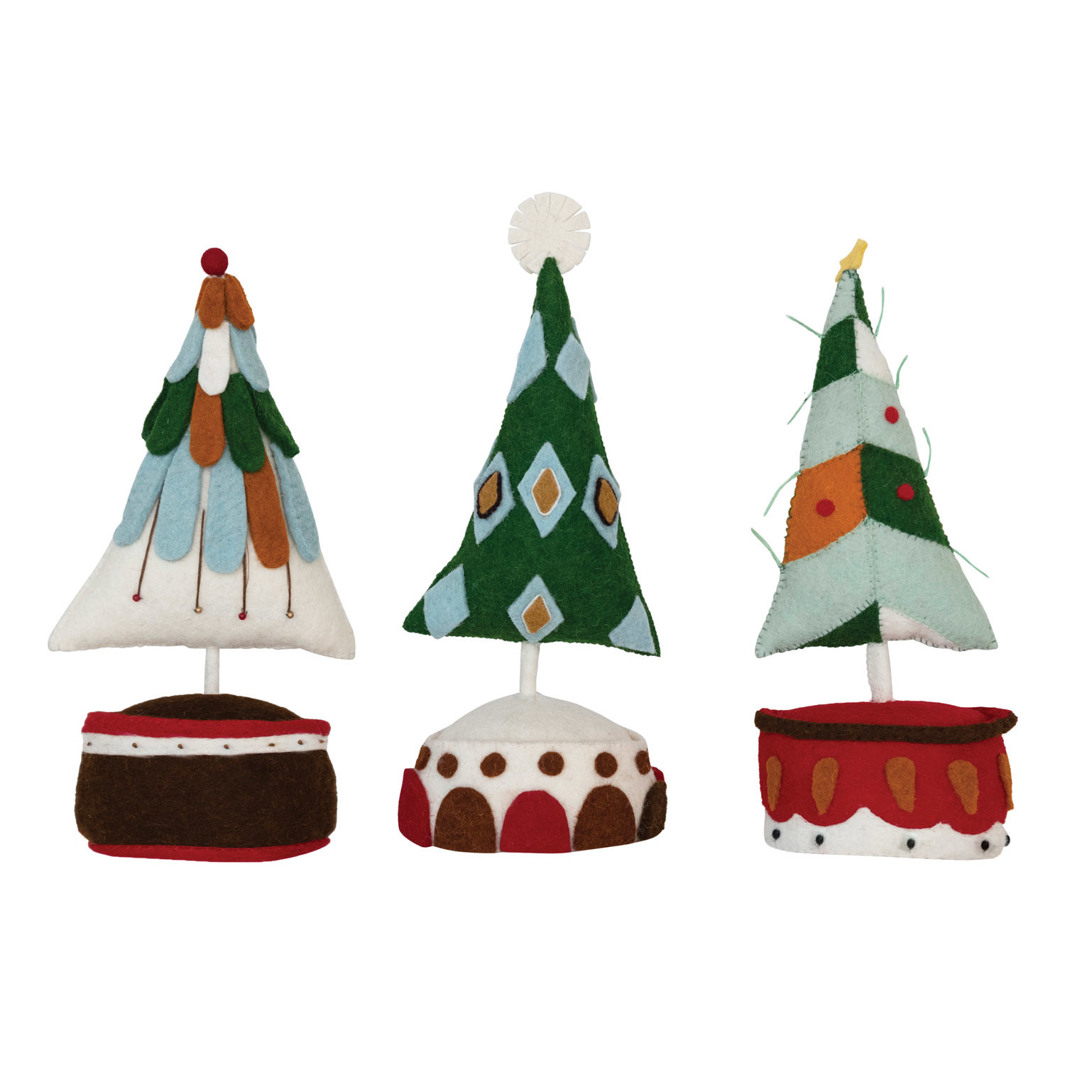 15"H Wool Felt Potted Christmas Tree with Embroidery and Applique, 3 Styles