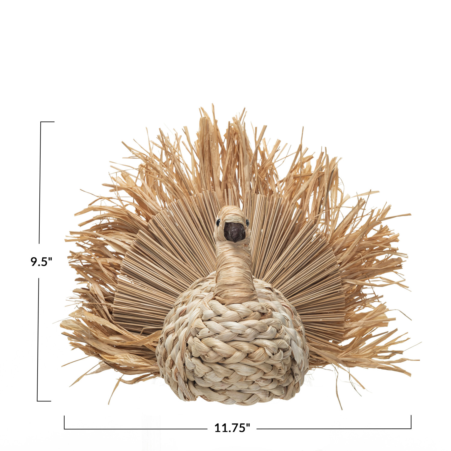 This dried turkey decorative item is a celebration of the harvest season, meticulously assembled from brown corn husk and raffia to create a piece that's both eye-catching and eco-conscious. Standing 11.75 inches long, 8 inches wide, and 9.5 inches high, it's an impressive representation of the traditional Thanksgiving symbol. It is ideal for decorating the table, mantel, shelf, or wall, or for gifting to friends and family. The natural materials and handcrafted quality ensure that each turkey is unique, adding a personalized touch to the festive decorations. Whether placed on a mantel, shelf, or at the center of any dining table, this charming turkey is sure to be a conversation starter and a beloved part of every holiday tradition.