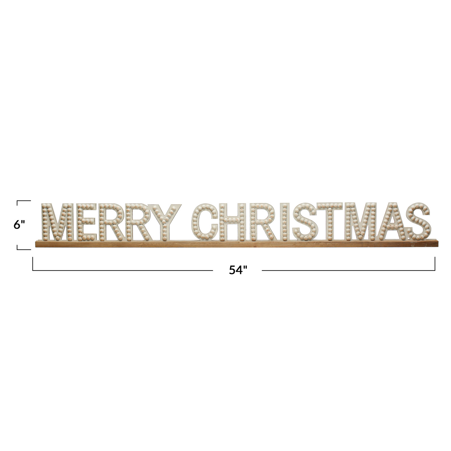 Catalog Name: 54"L x 6"H Fir Wood Hobnail Mantel Sign "Merry Christmas", White & Natural