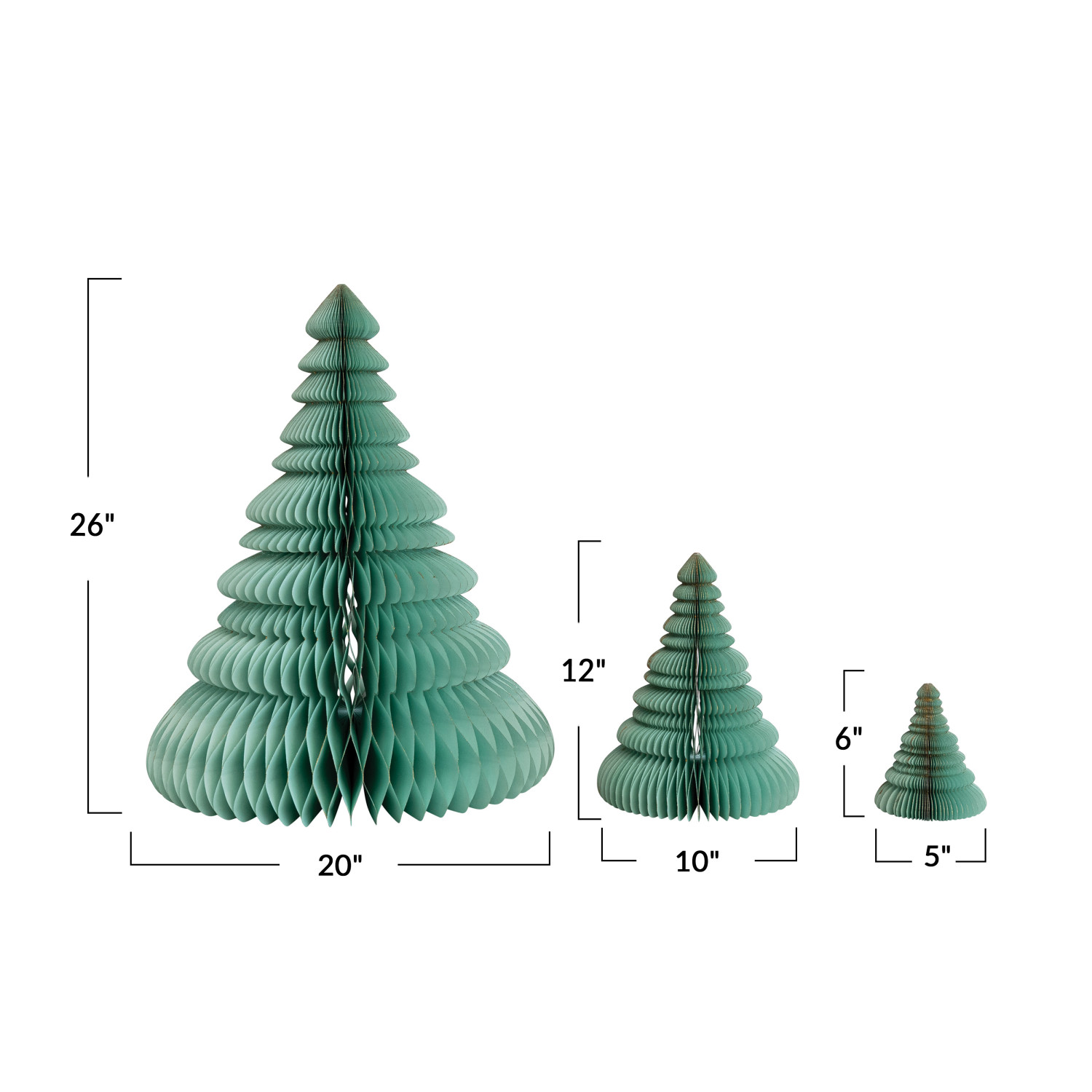 Catalog Name: 20" Round x 26"H, 9-1/2" Round x 12"H & 5" Round x 6"H Handmade Recycled Paper Folding Honeycomb Trees w/ Glitter, Turquiose, Set of 3