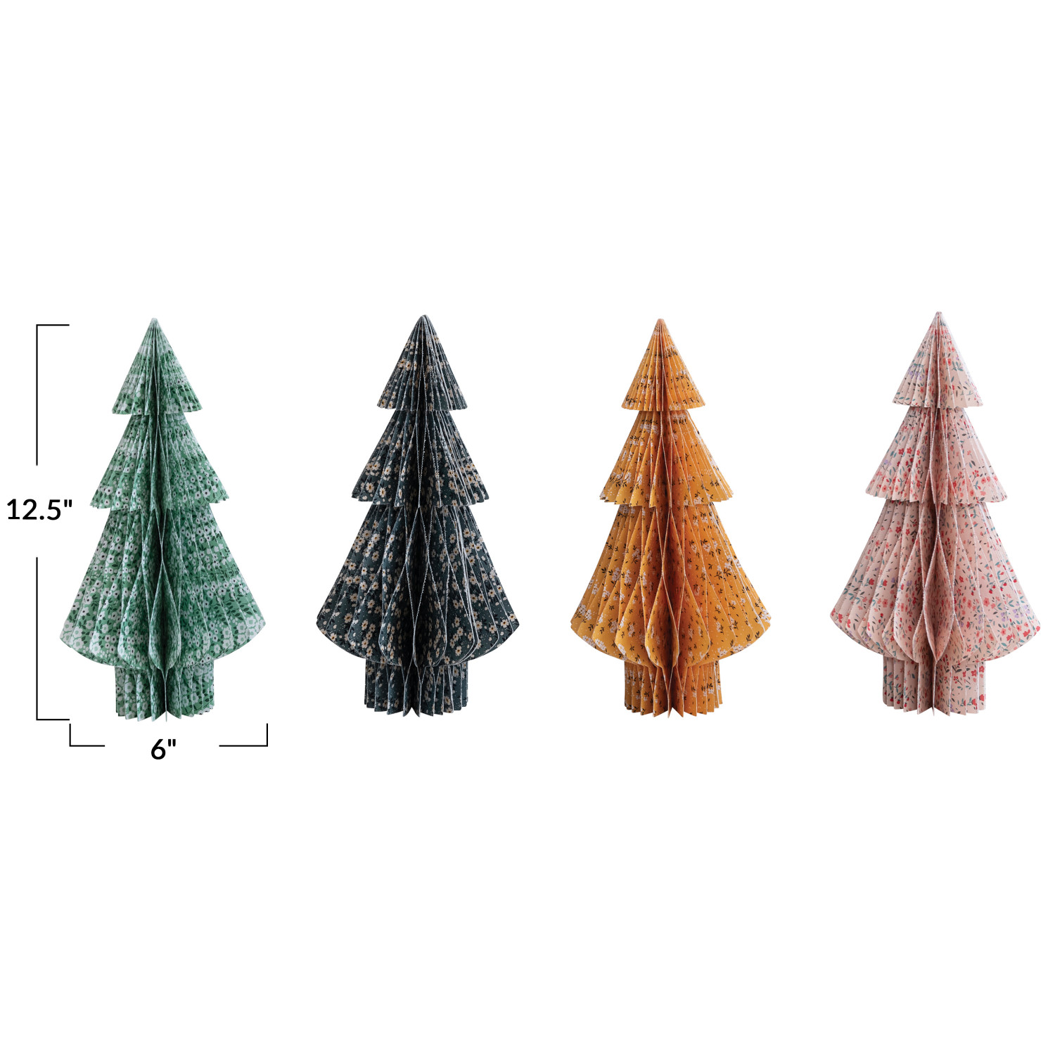 Catalog Name: 6" Round x 12"H Handmade Recycled Paper Folding Honeycomb Tree w/ Chintz Pattern, 4 Styles