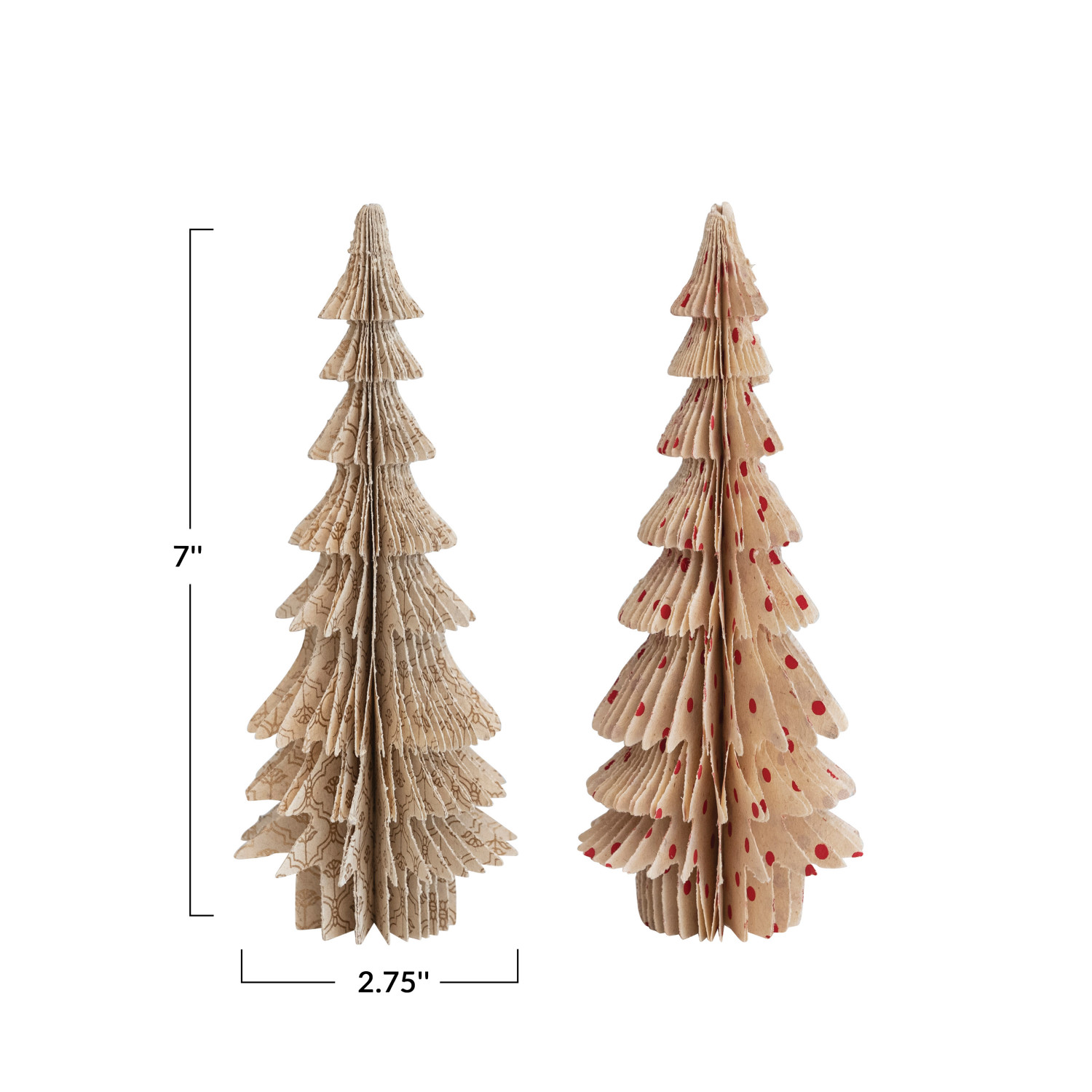 2-3/4" Round x 7"H Handmade Recycled Paper Folding Honeycomb Tree w/ Pattern, 2 Colors