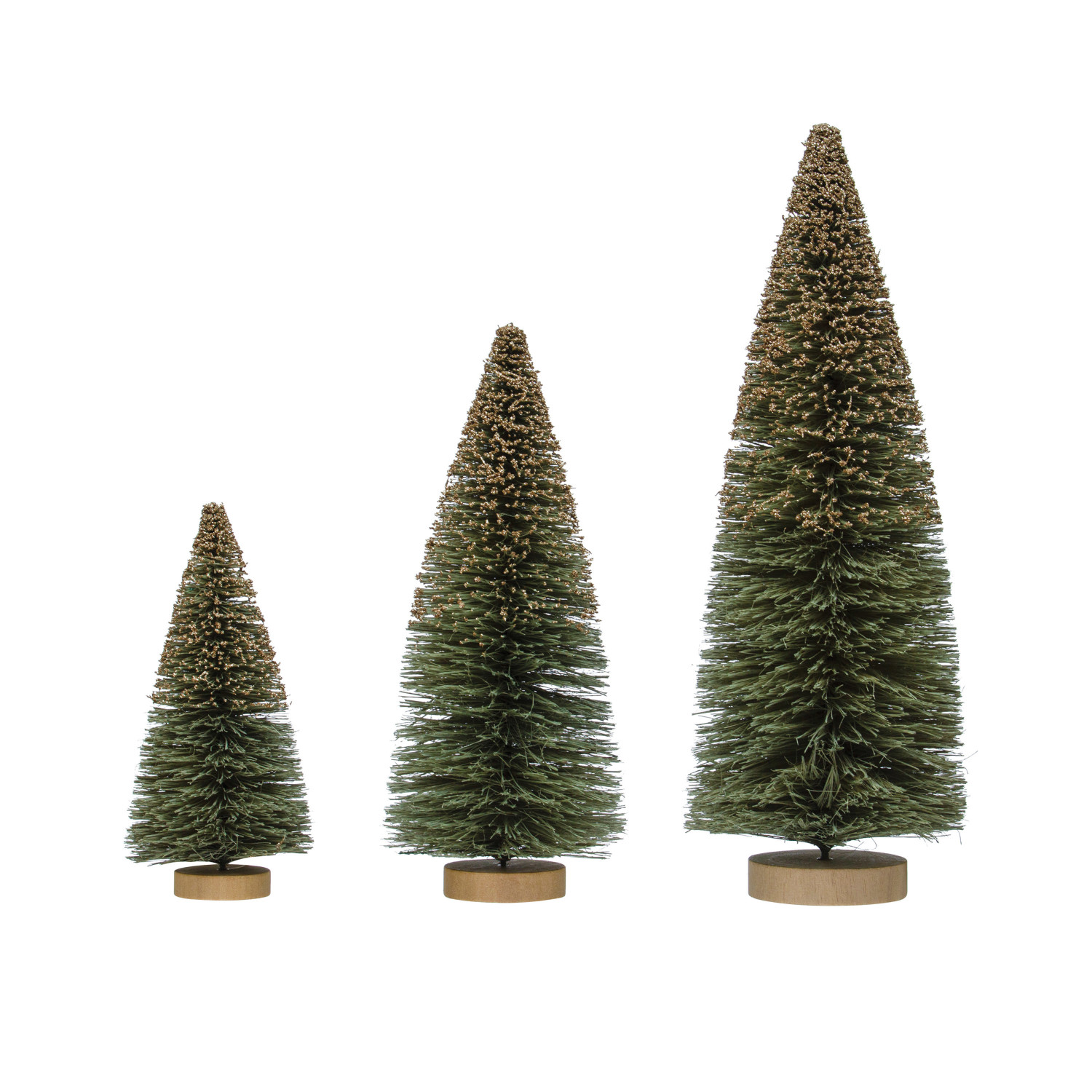 3" Round x 6"H Sisal Bottle Brush Tree w/ Glitter & Wood Base, Grey