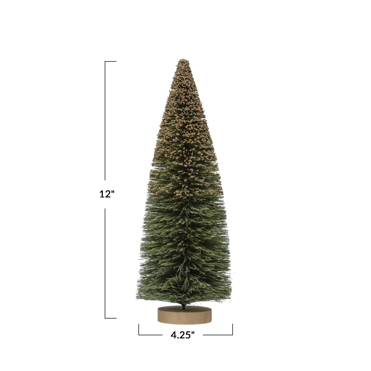 Catalog Name: 4-1/4" Round x 12"H Sisal Bottle Brush Tree w/ Glitter & Wood Base, Grey