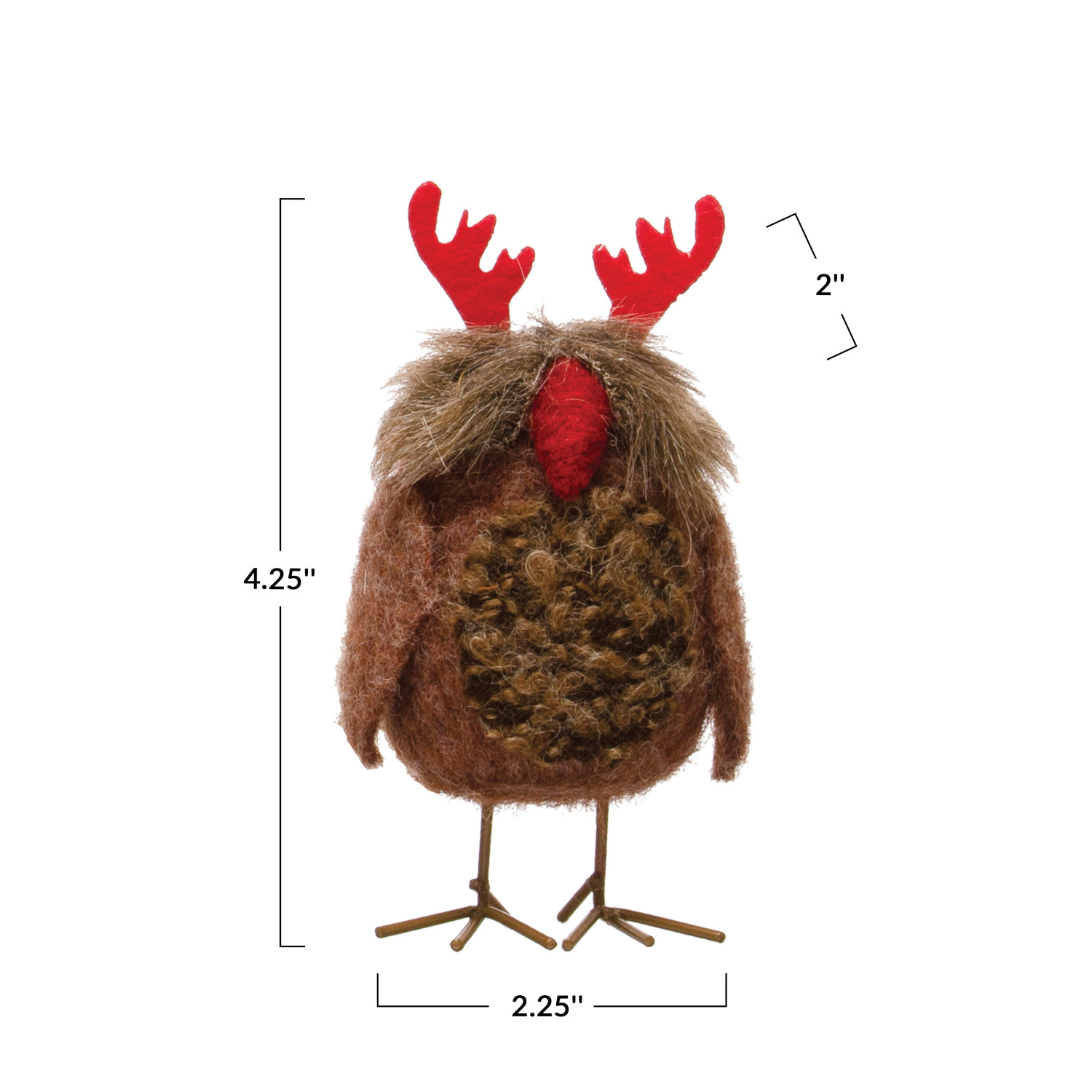 Catalog Name: 2-1/4"L x 2"W x 4-1/4"H Wool Felt Owl w/ Antlers, Brown & Red