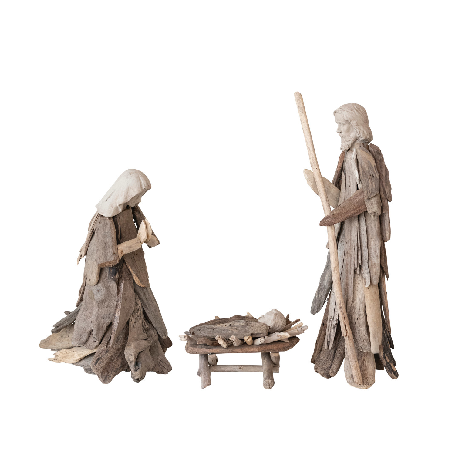 Handmade Driftwood Holy Family, Natural, Set of 3