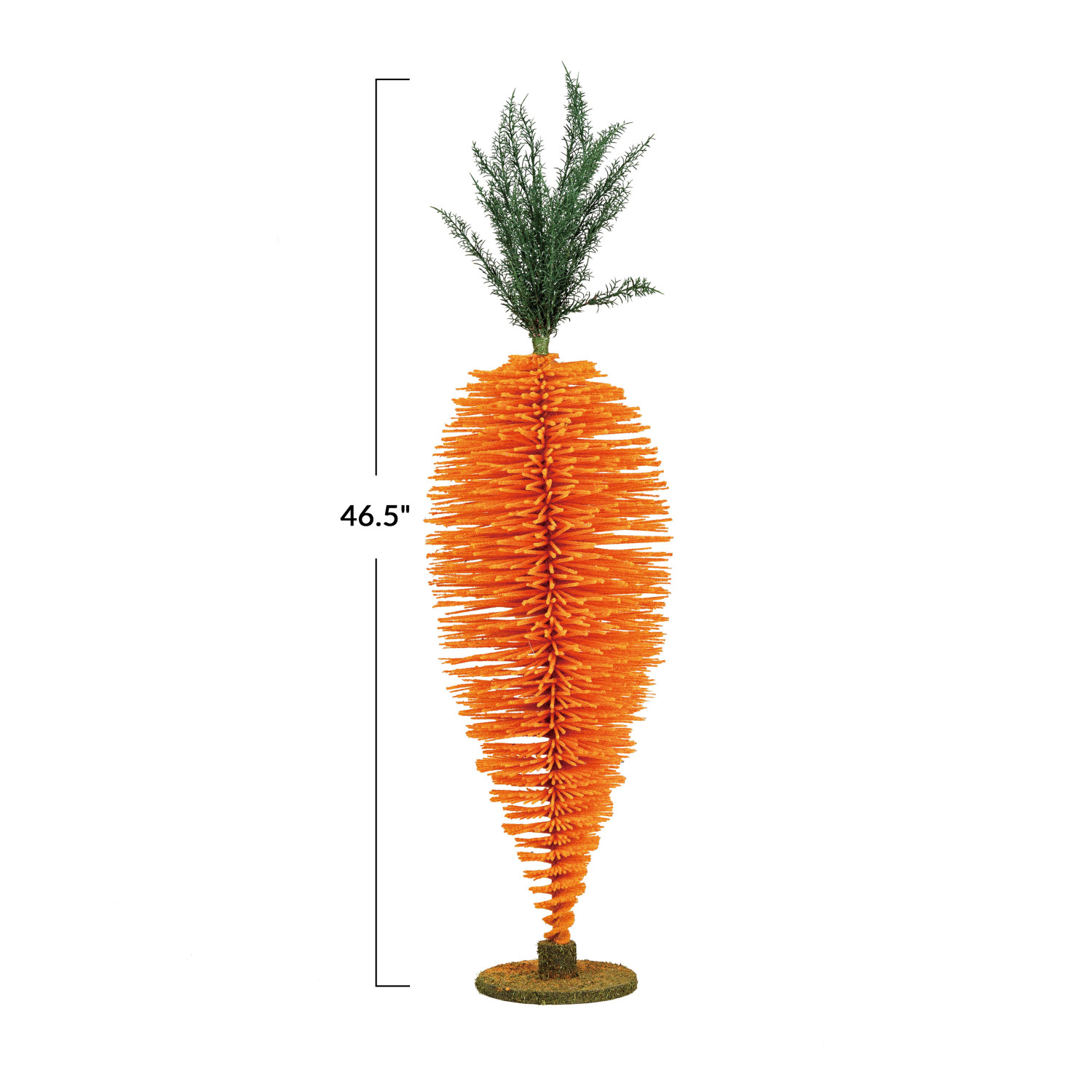 Catalog Name: 46-1/2"H Flocked Bottle Brush Standing Carrot w/ Faux Moss Finish MDF Base, Green & Orange Color
