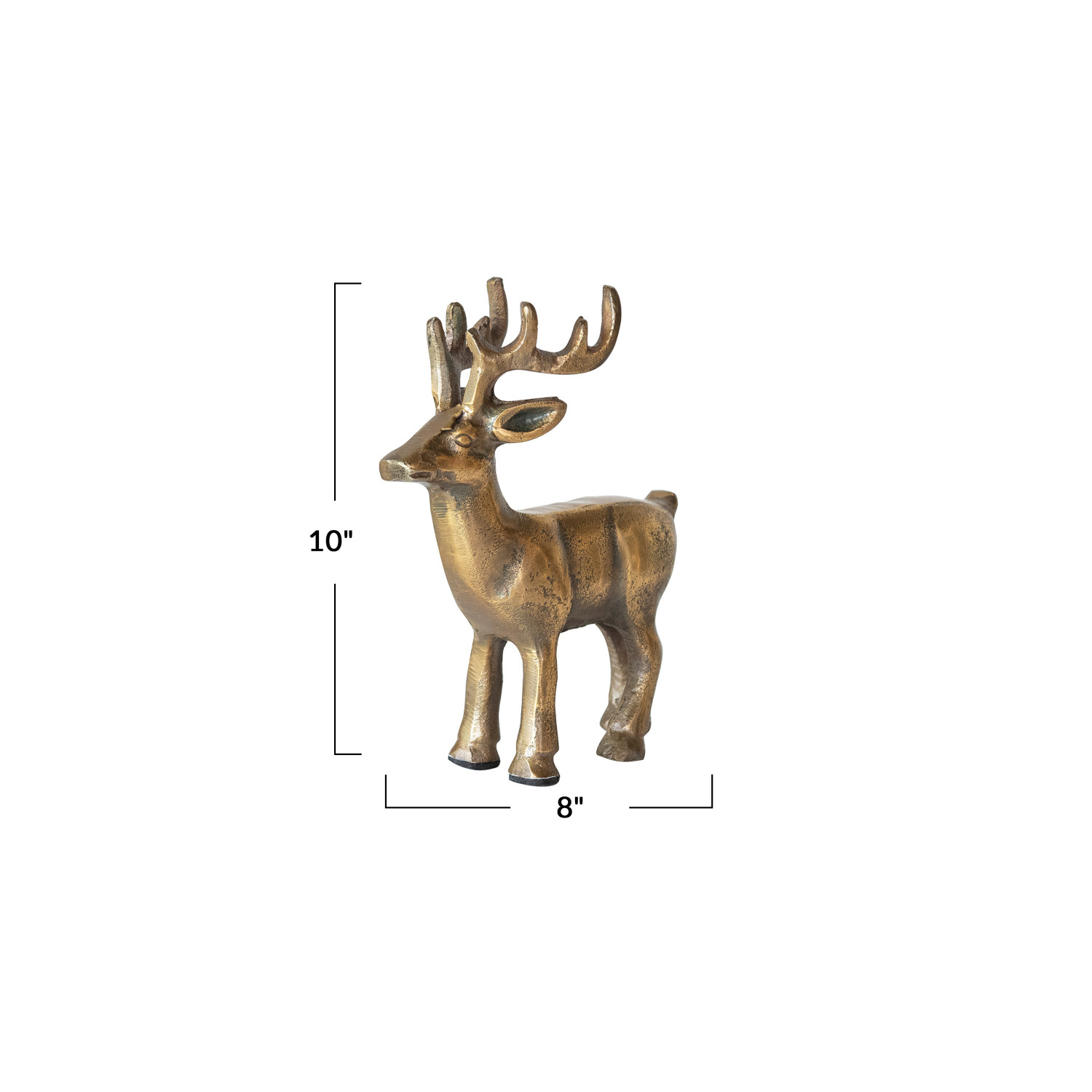 Catalog Name: 8"L x 2"W x 10"H Cast Aluminum Reindeer, Antique Gold Finish