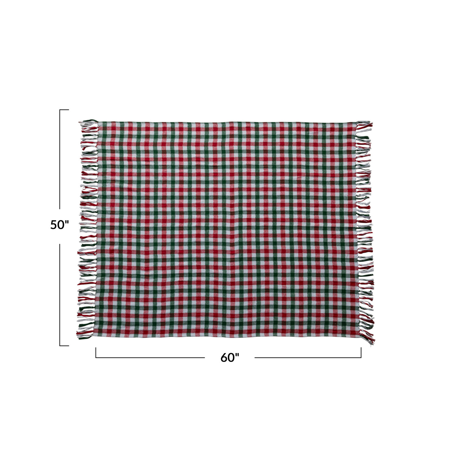 Catalog Name: 60"L x 50"W Brushed Cotton Flannel Throw w/ Fringe, Red, Green & White Gingham