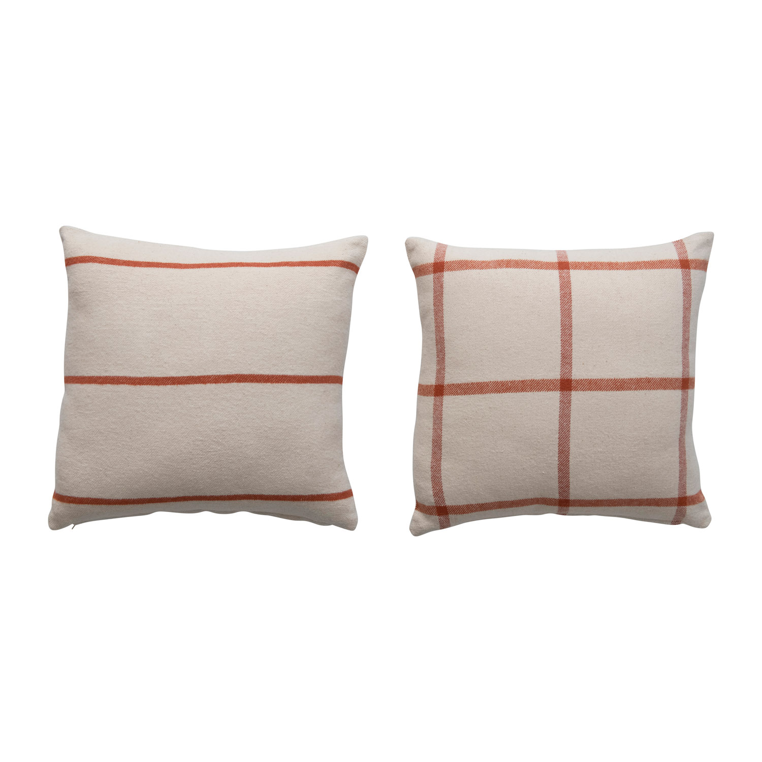 18" Cotton Flannel Pillow with Pattern, Cream & Rust Color, 2 Styles