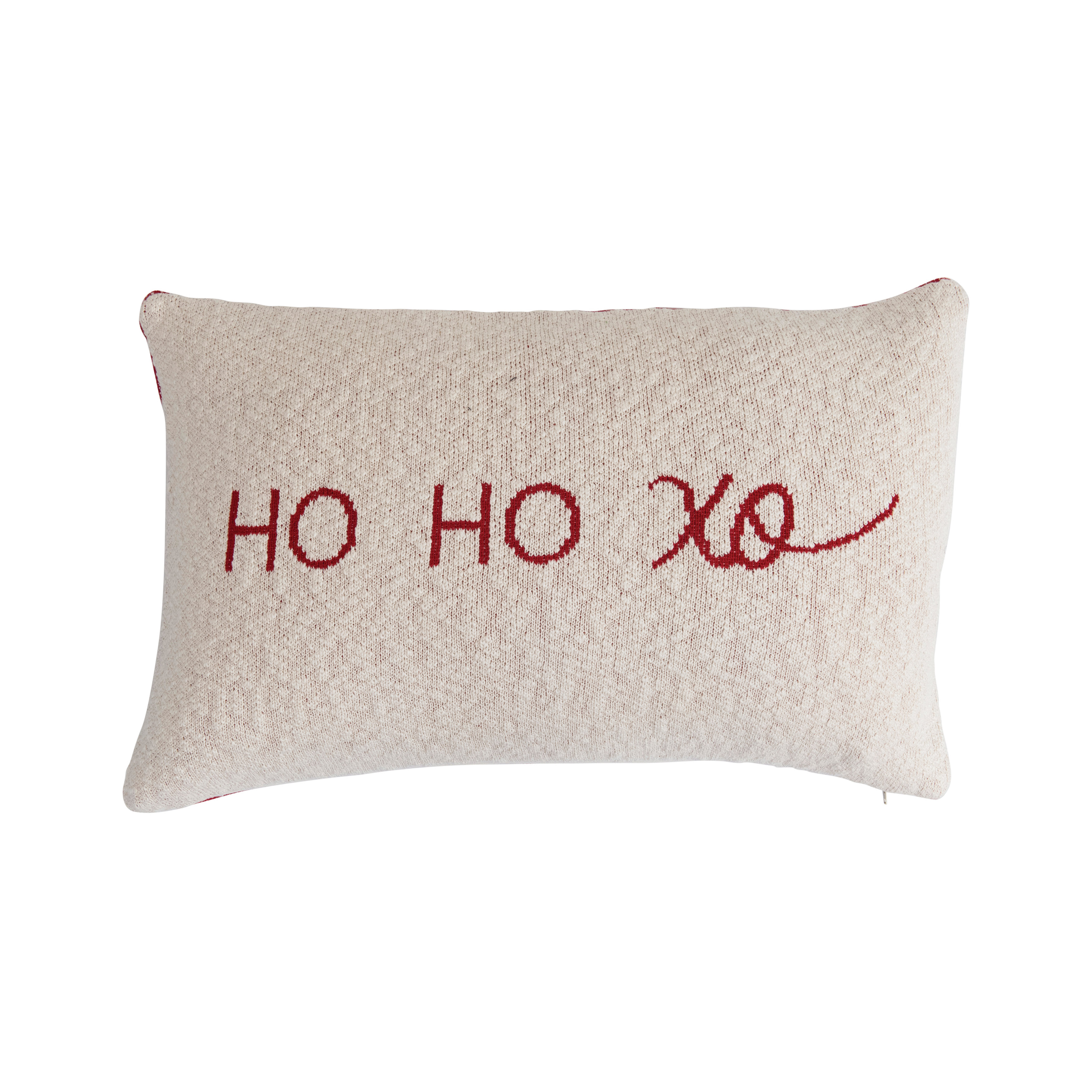 Catalog Name: 24"L x 16"H Two-Sided Cotton Knit Lumbar Pillow "HO HO XO", Red and Cream Color