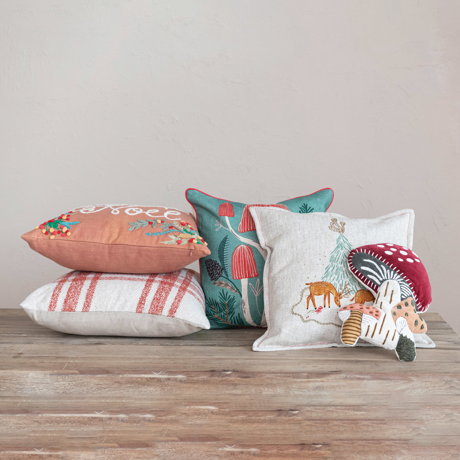 Catalog Name: 14"L x 10"W Cotton Velvet Embroidered Mushrooms Shaped Pillow, Multi Color
