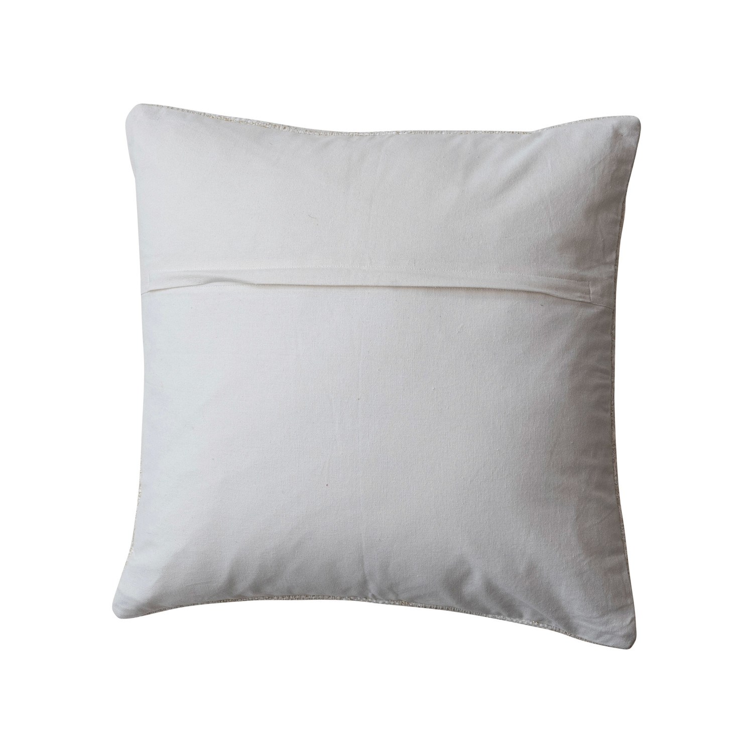 This 20-inch square woven cotton blend pillow is a testament to understated luxury, featuring a natural hue enriched with gold metallic thread embroidery. The cotton blend cover combines softness with a subtle sheen, inviting both the eye and the touch. Inside, the polyester fill ensures the pillow remains fluffy and supportive, making it not just a decorative piece but also a comfortable one. Its size is ideal for adding a refined touch to any seating arrangement or as a standalone statement on a bed or armchair. Whether it's part of a festive setup or a year-round display of elegance, this pillow's timeless design and premium materials make it a versatile and cherished addition to any home. A touch of elegance, this natural-colored woven pillow is adorned with exquisite gold metallic thread embroidery. An ideal accent for a luxurious yet understated aesthetic, it seamlessly blends with both modern and traditional decors. A plush polyester fill gives this pillow a full, firm shape.