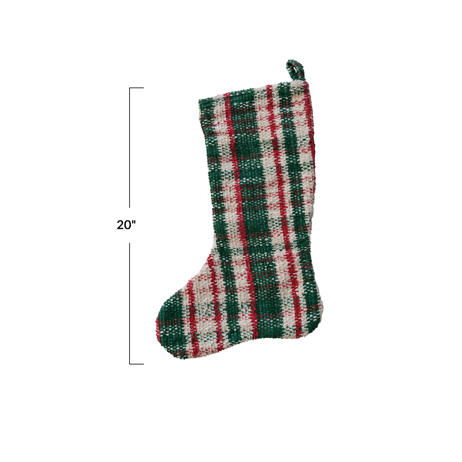 Catalog Name: 20"H Woven Cotton Blend Stocking, Cream Color, Green & Red Plaid