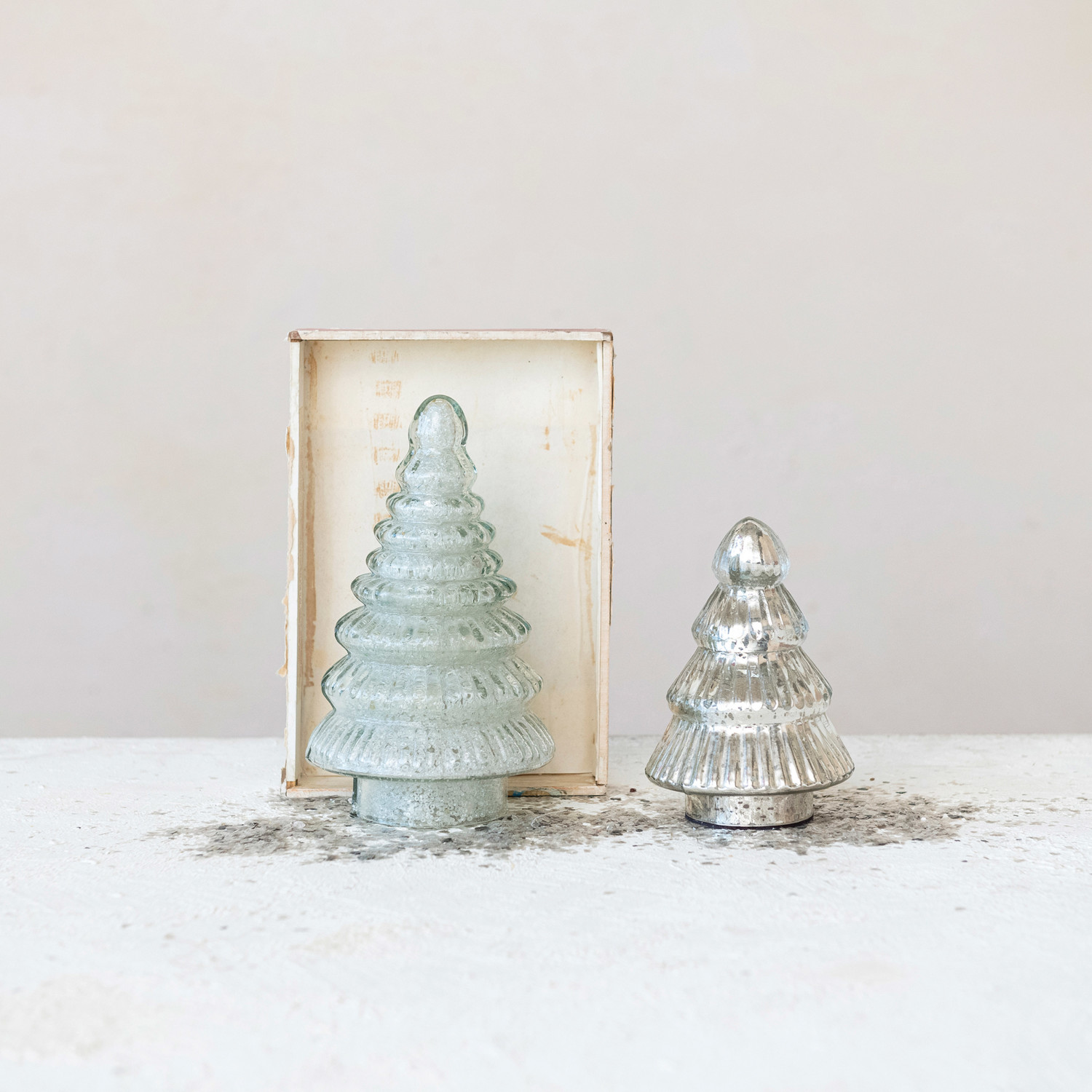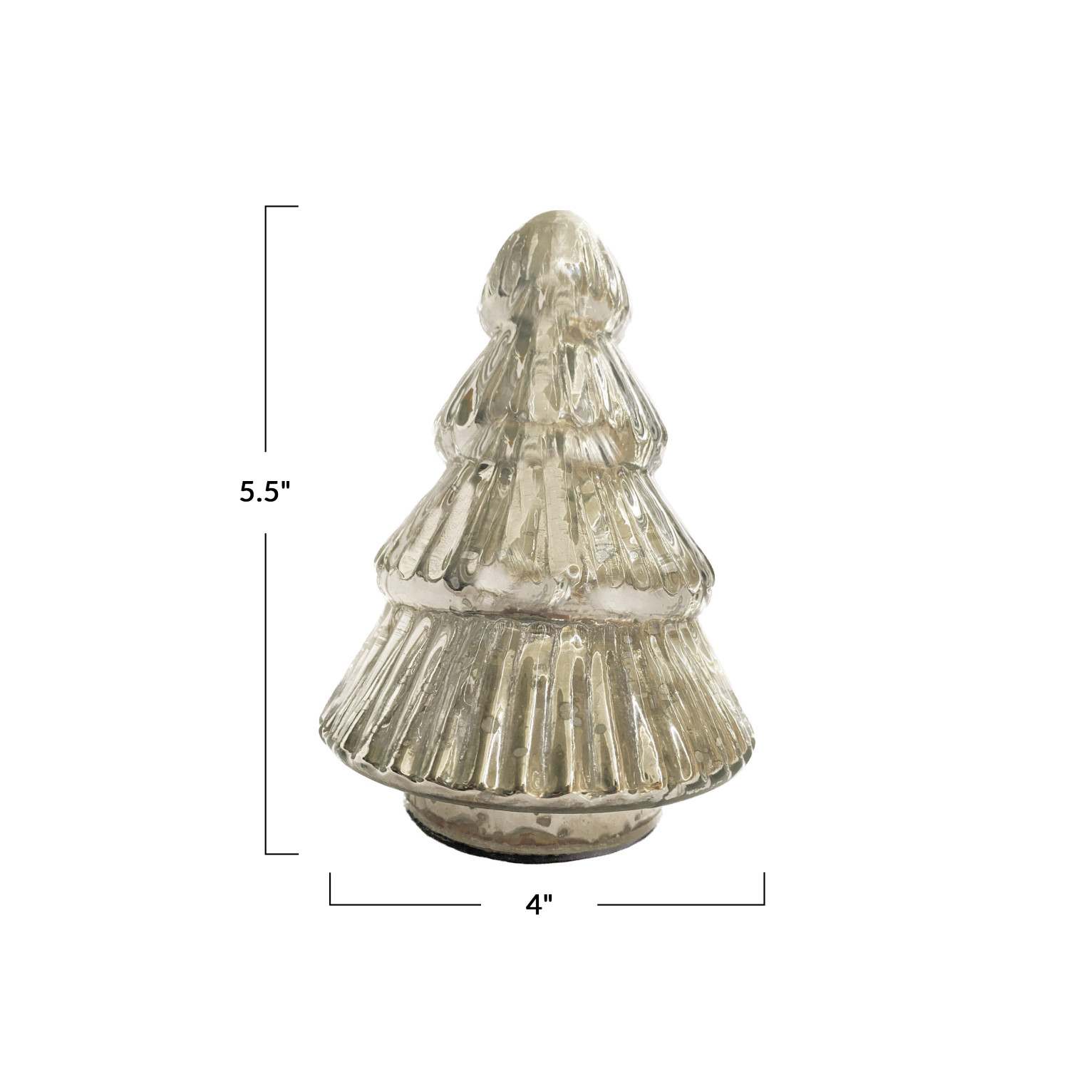 Catalog Name: 4" Round x 5-1/2"H Embossed Mercury Glass Tree, Silver Finish