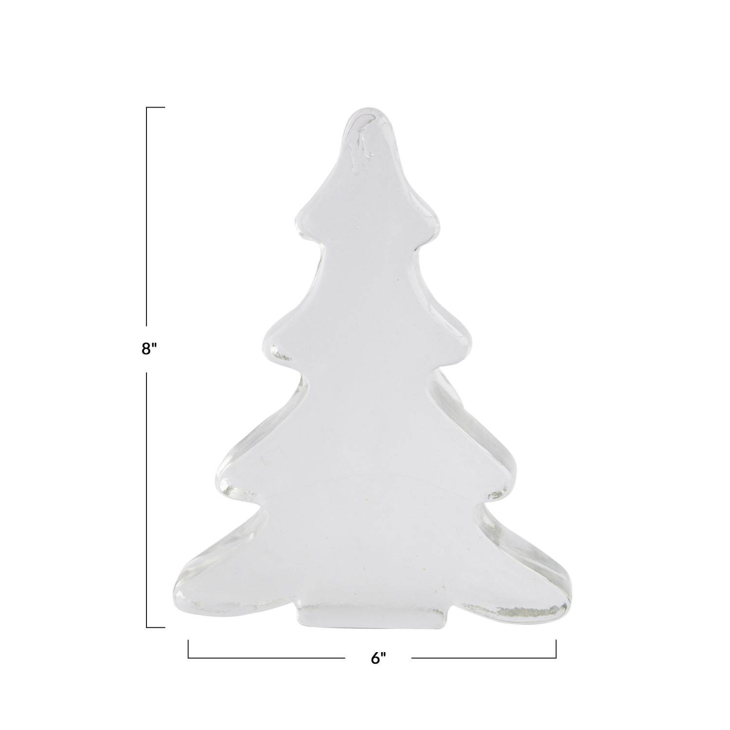 This flat glass tree decor is a lovely and unique way to decorate for the holidays. It features a flat glass tree decor in clear with a smooth texture, creating a beautiful and eye-catching effect. The tree decor has a colorful and festive look that can suit any style and theme, from traditional to modern. The tree decor is ideal for displaying on a wall, door, window, or fireplace, where it can add a touch of charm and warmth to the space. The tree decor can also be easily hung or leaned against any surface, making it a convenient and versatile option. The tree decor is made of glass that is durable, smooth, and easy to clean, making it a long-lasting and high-quality option. It measures 6 inches in length, 1 inch in width, and 8 inches in height, making it a graceful and noticeable centerpiece. Elevate the holiday decor with this eye-catching Christmas tree, adding both style and a touch of whimsy. An organic and unique flat glass tree decor in clear with a smooth texture. A colorful and festive addition to any holiday decor, this tree decor reflects light and creates a beautiful effect in any room. Ideal for displaying on a wall, door, window, or fireplace, this tree decor can be easily hung or leaned against any surface.