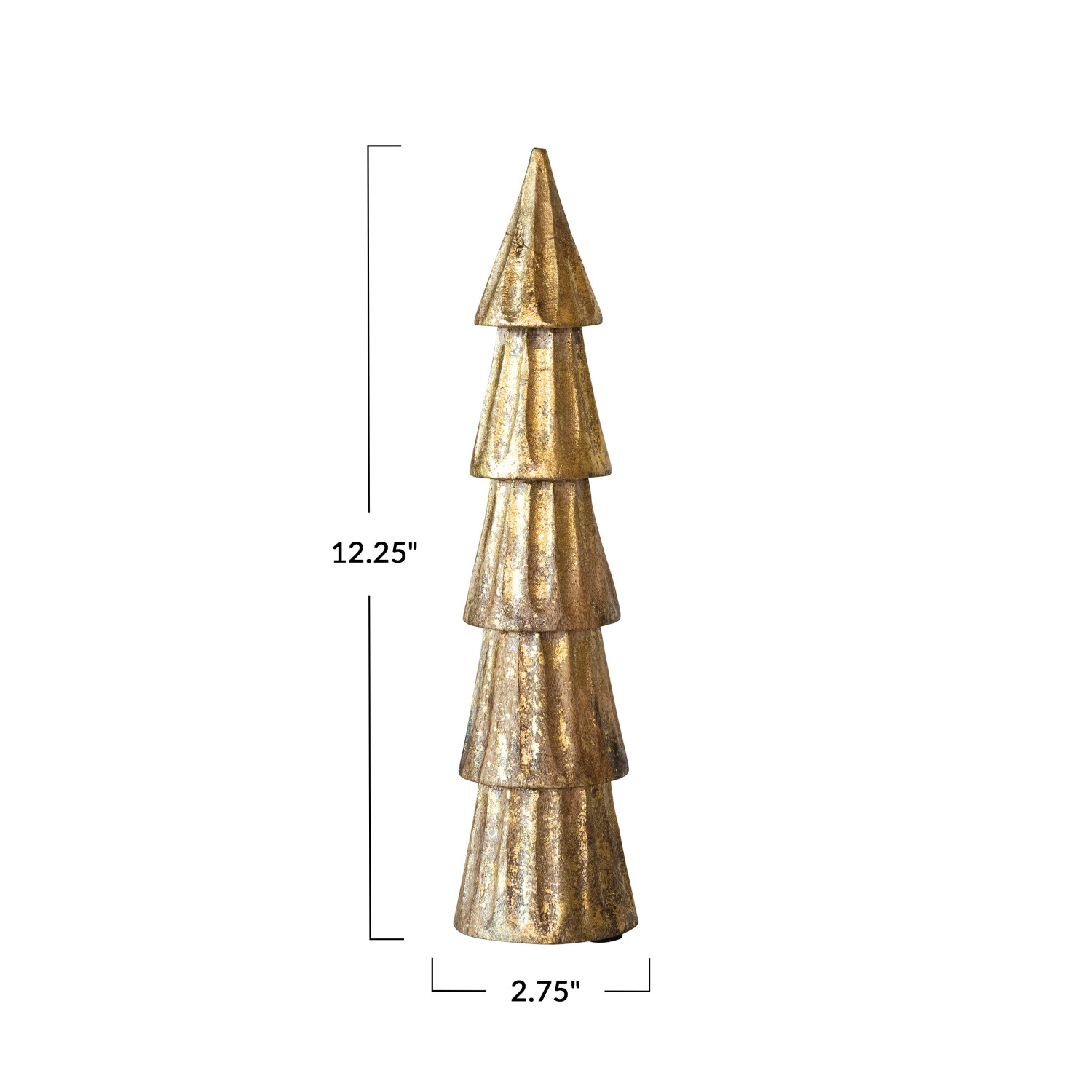 Catalog Name: 2-3/4" Round x 12-1/4"H Carved Mango Wood Tree, Rubbed Gold Foil Finish