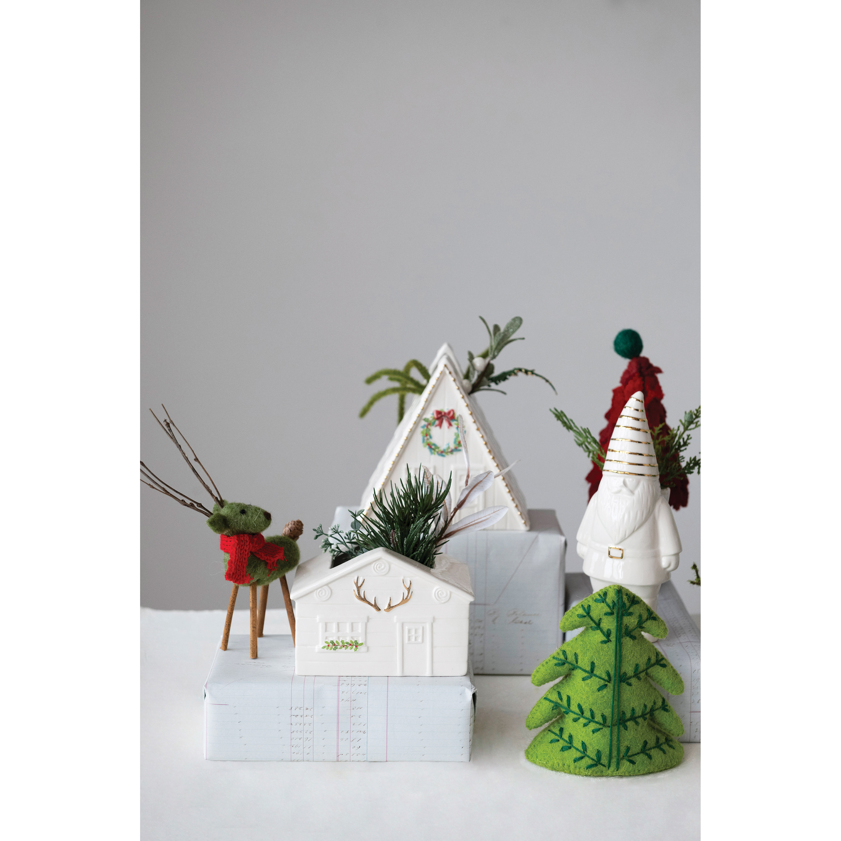 Catalog Name: 3-1/2"L x 3-1/4"W x 8-1/4"H Stoneware Gnome Vase with Gold Electroplating, White