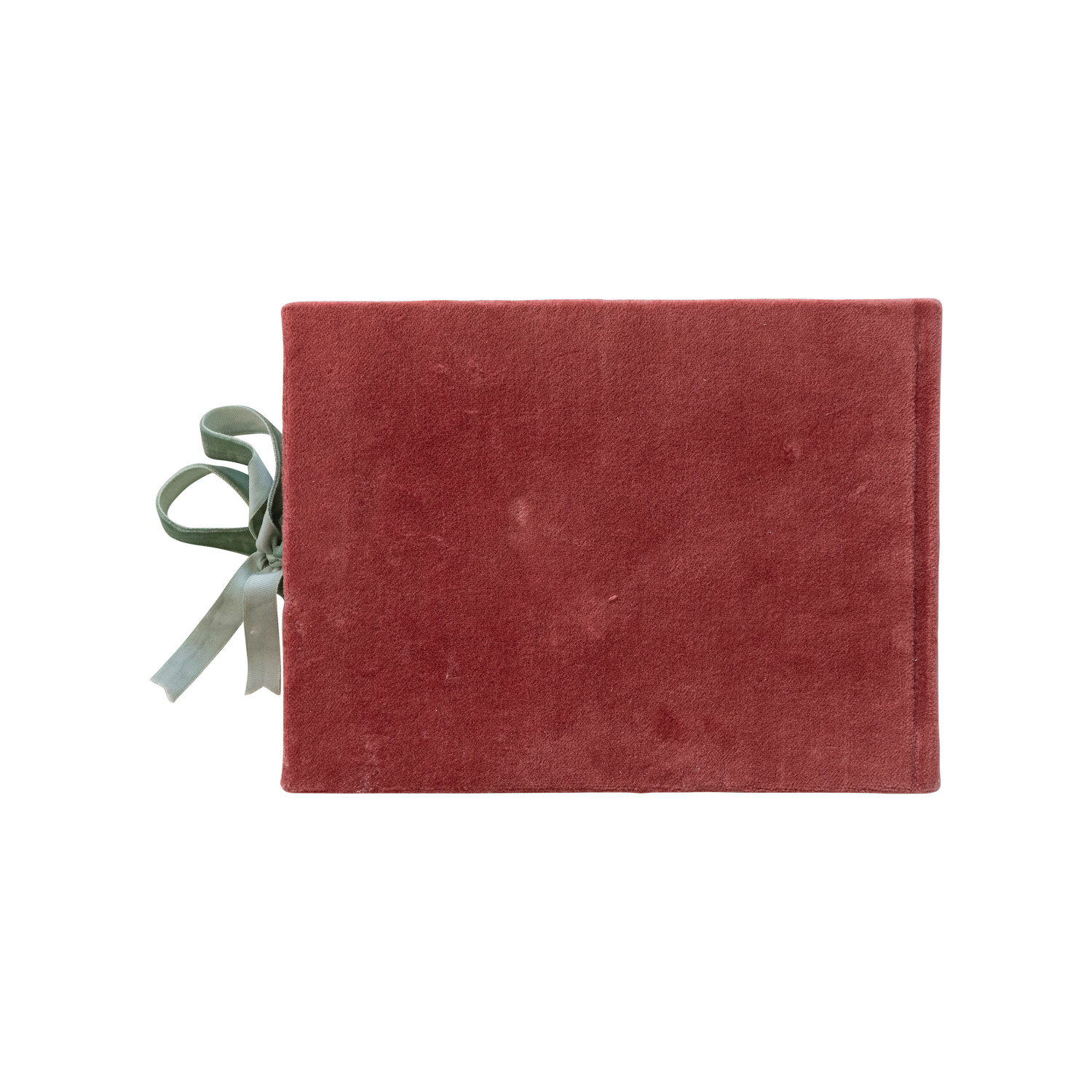 This embroidered cotton velvet journal with handmade paper is a lovely and unique accessory that will inspire creativity and add charm to any desk or bookshelf. The journal has a soft and plush velvet cover that is embroidered with a vibrant floral pattern. The cover has a matching velvet ribbon that ties around the journal to keep it closed and secure. The journal has 60 blank pages of handmade paper that are waiting for words and drawings. The paper is made of natural fibers that are acid-free and eco-friendly. The paper has a smooth and textured feel that will make writing a pleasure. This journal is perfect for anyone who loves boho, eclectic, global, transitional, or cottagecore style. It can also make a great gift for a friend or a loved one who enjoys writing, sketching, or journaling. This embroidered cotton velvet journal with handmade paper is a beautiful and cozy journal that will make anyone smile every time they open it.