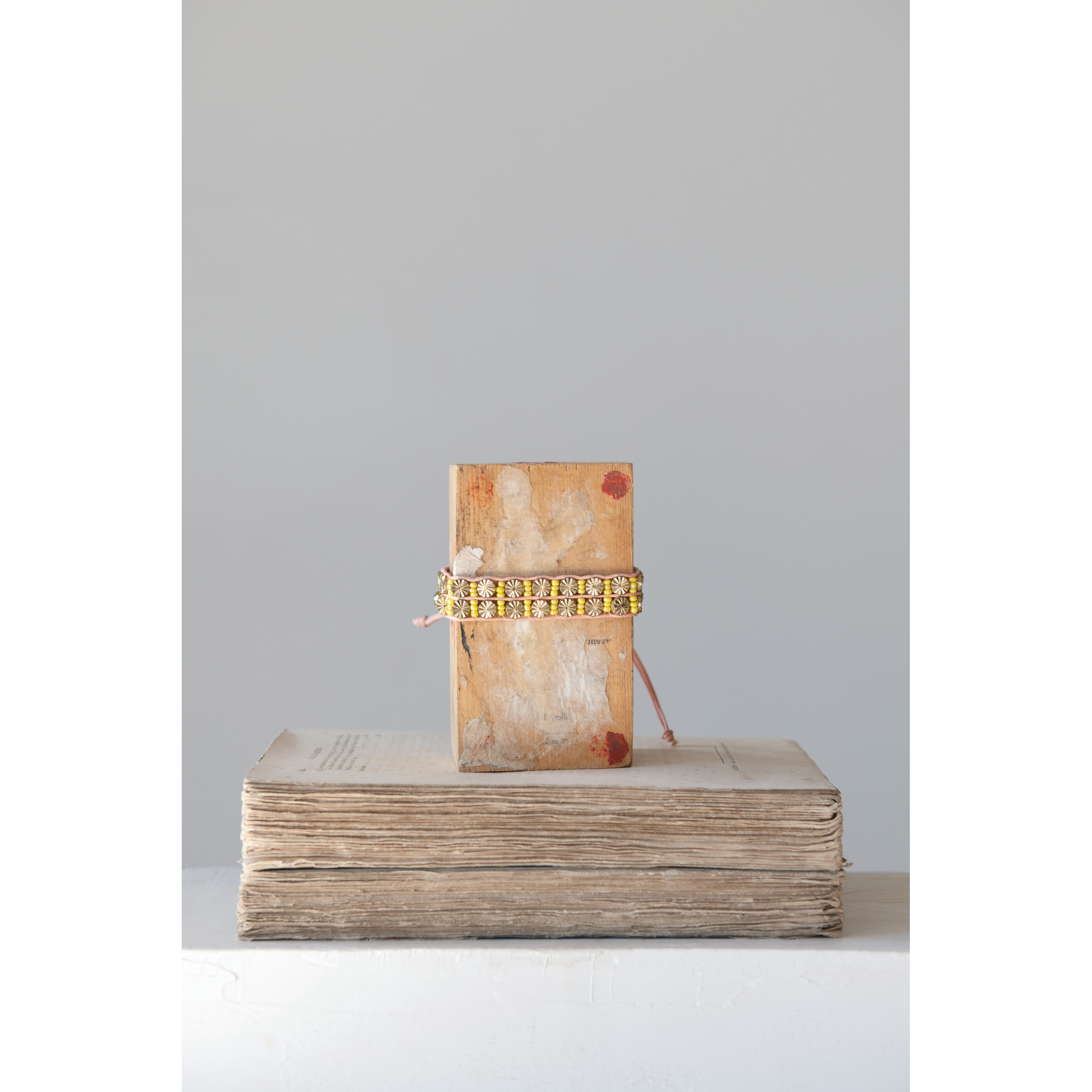 Catalog Name: 6"L Cotton, Metal & Glass Bead Drancy Bracelet, Adjustable