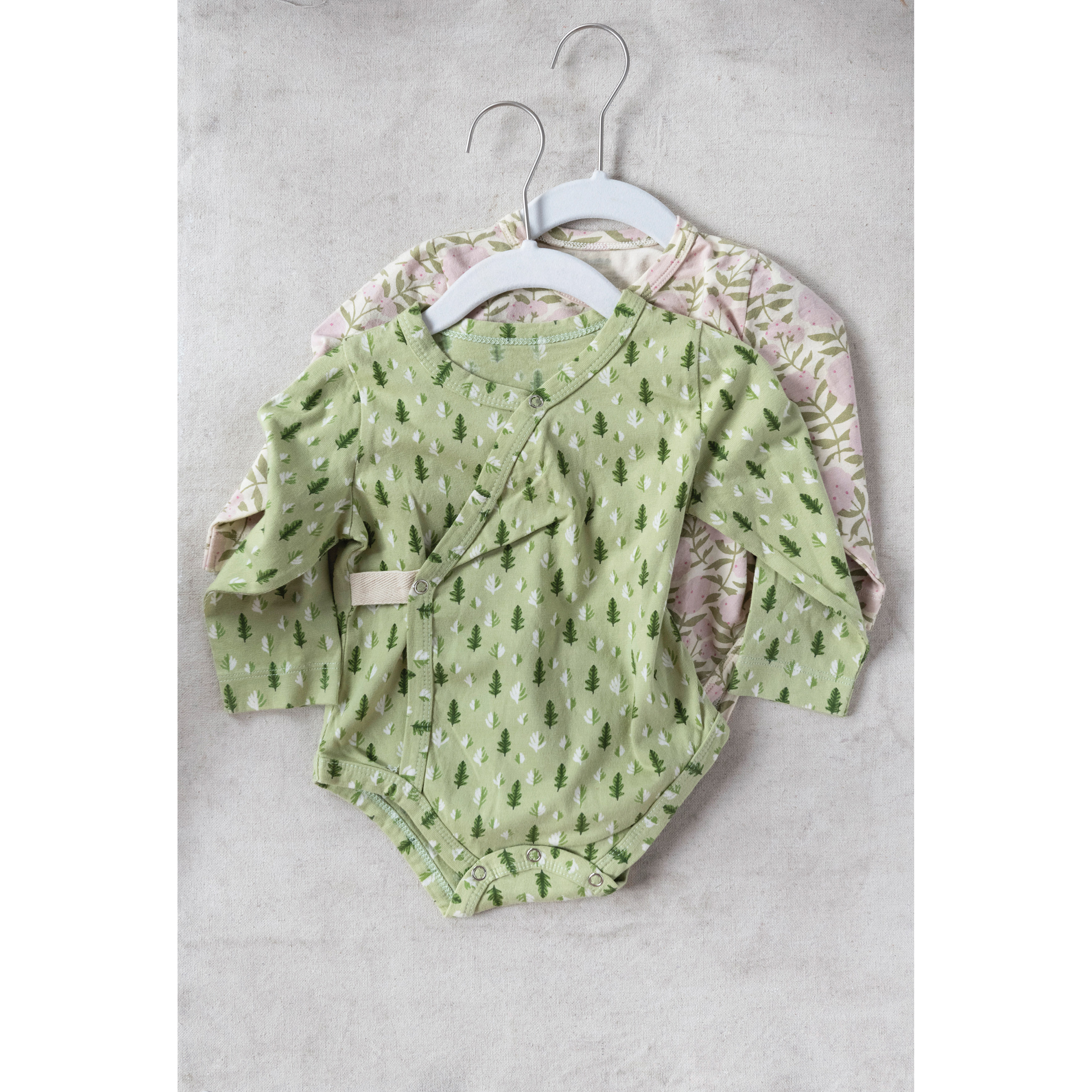 Cotton Baby Kimono Long Sleeve Bodysuit with Patterns, 4 Styles