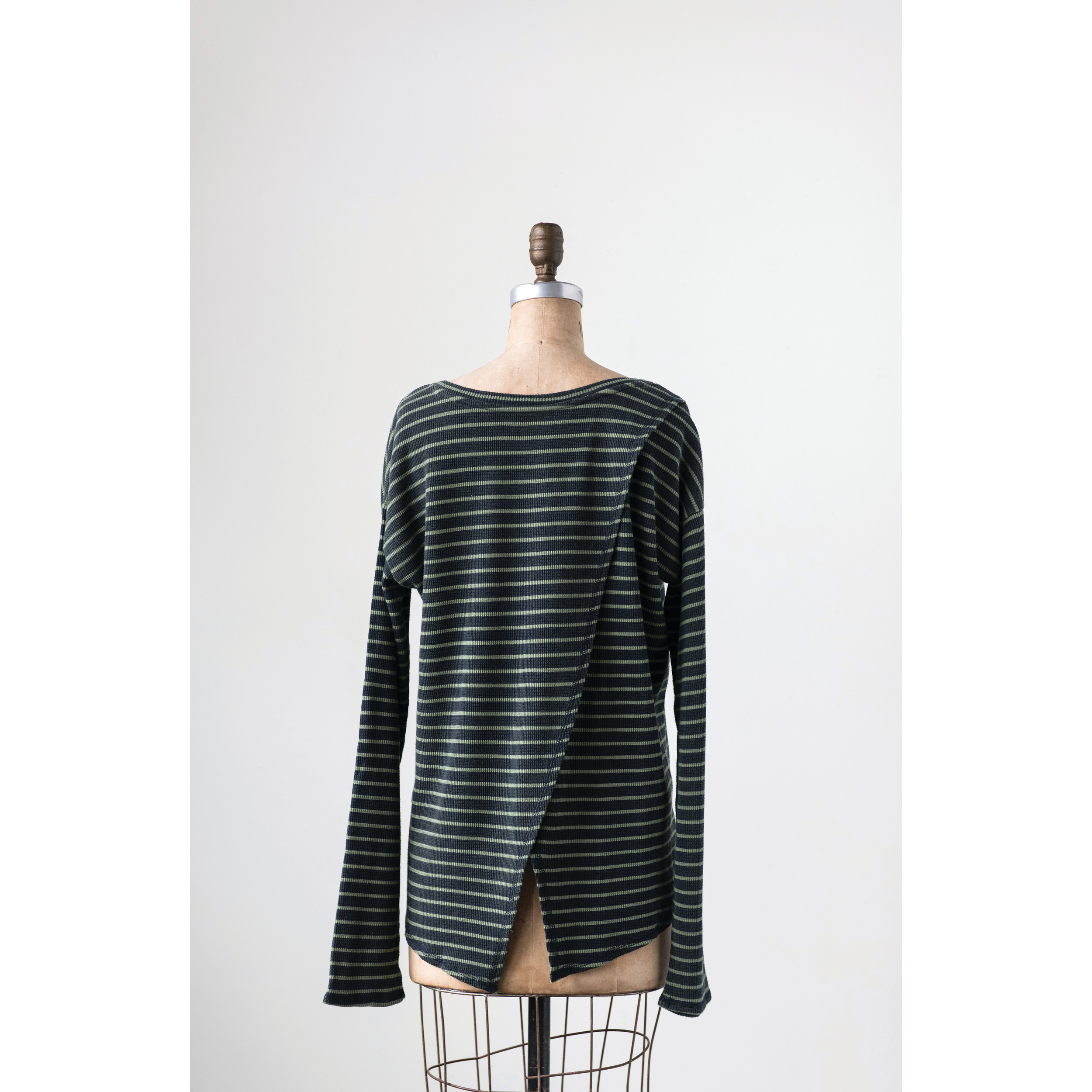 Catalog Name: Cotton Waffle Riley Tee w/ Cross Back, Charcoal w/ Olive Green Stripe, Small