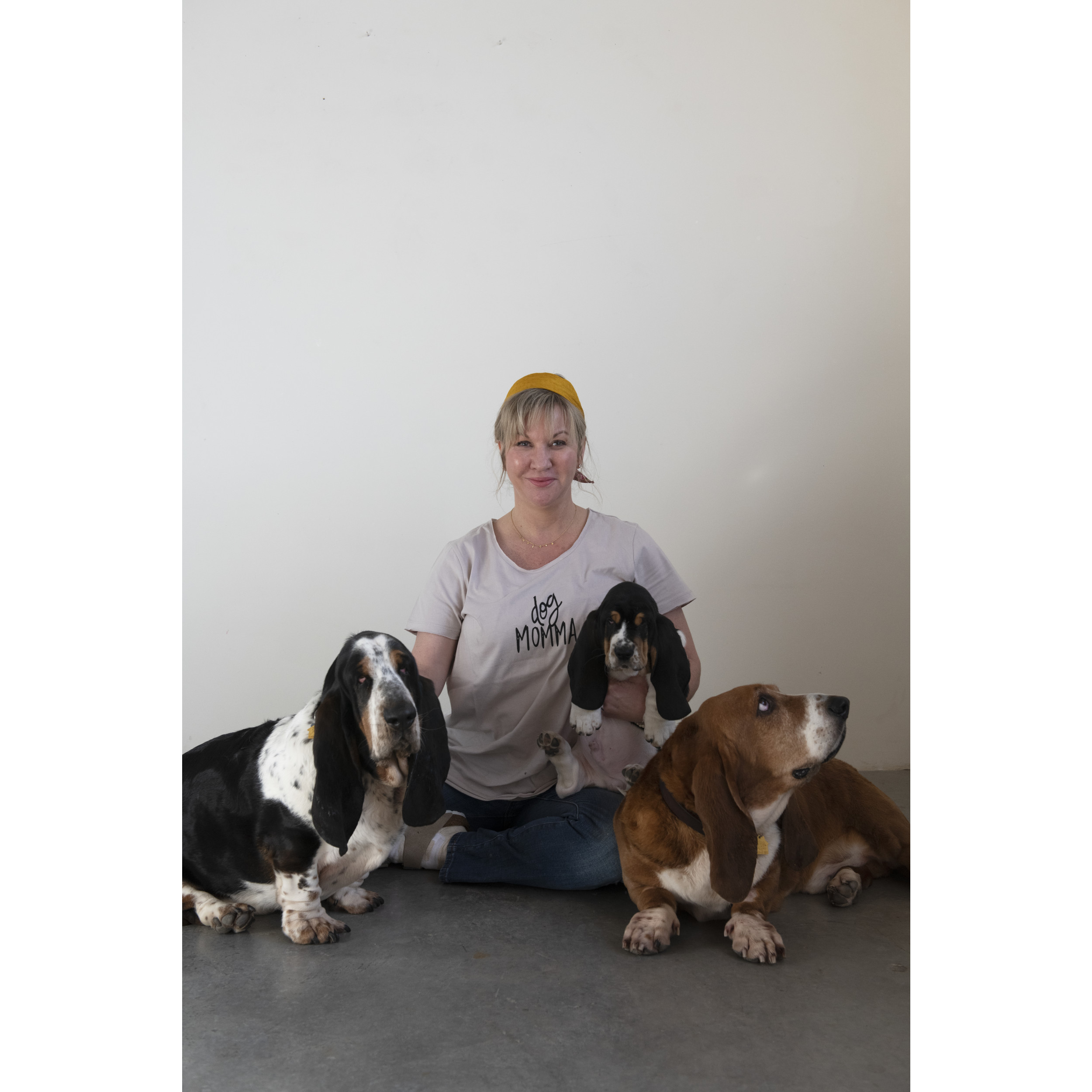 Catalog Name: Cotton Screen Printed T-Shirt "Dog Momma", Grey & Black, Large