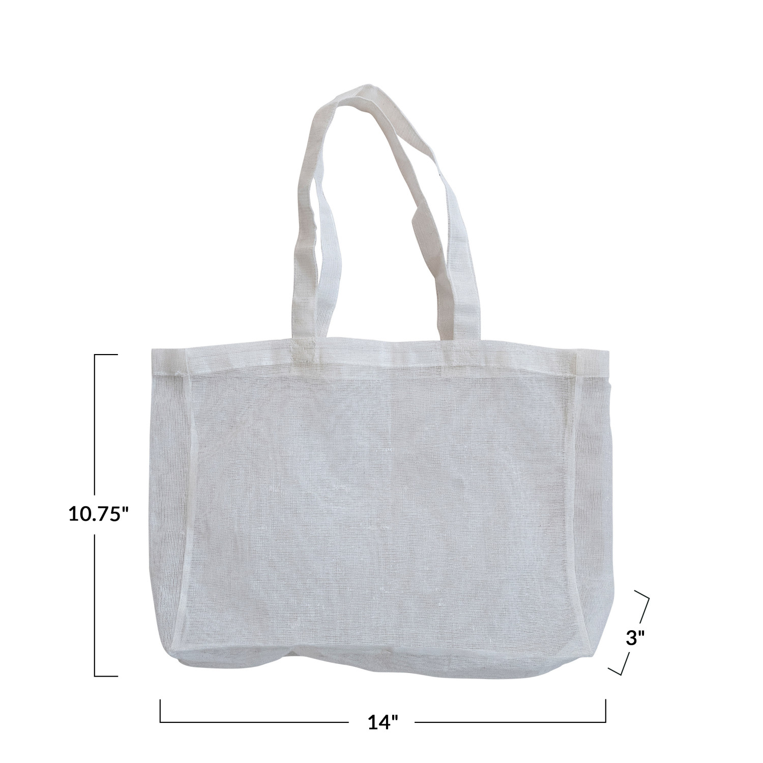 Catalog Name: 14"L x 3"W x 10-3/4"H Cotton Organza Tote Bag w/ Handles, Natural