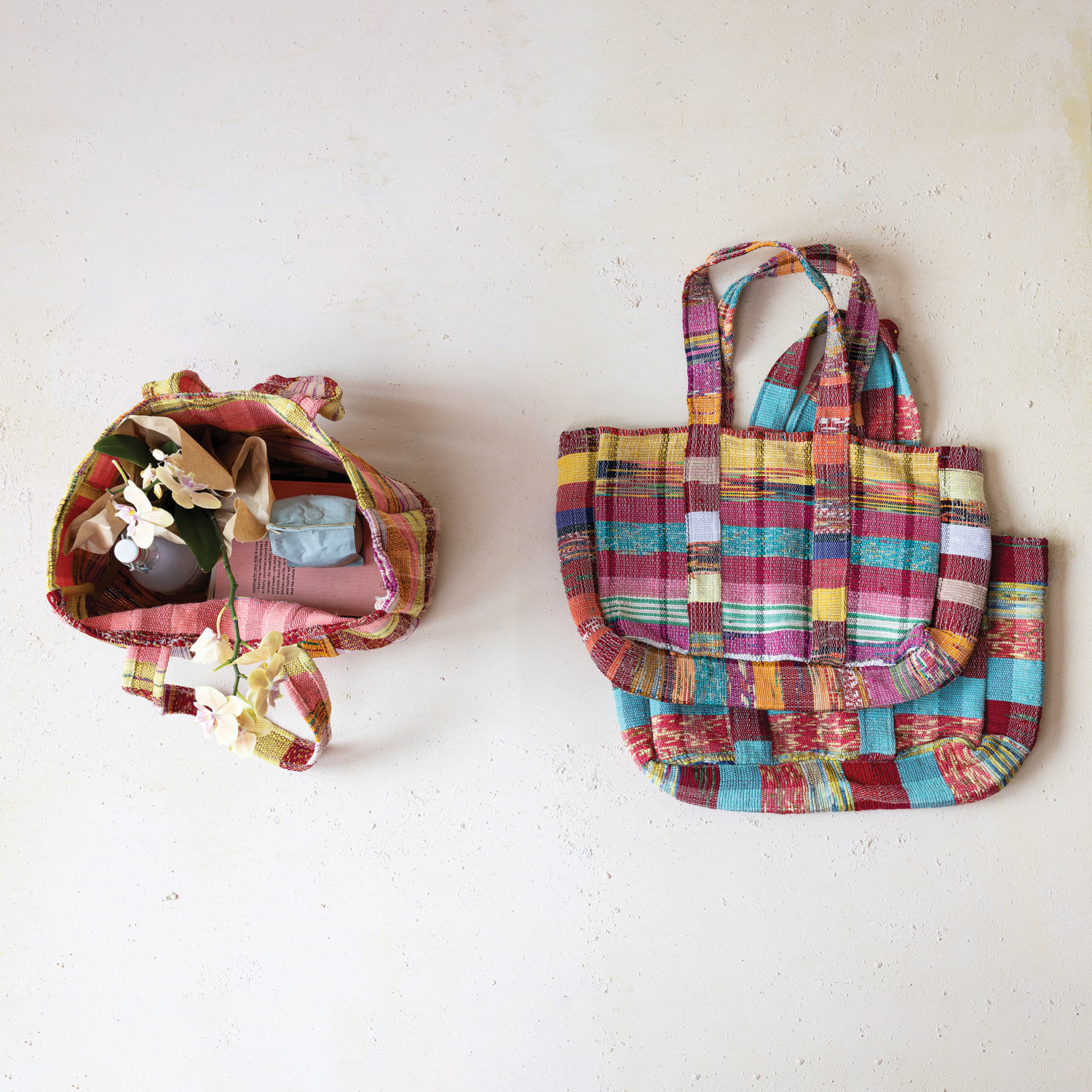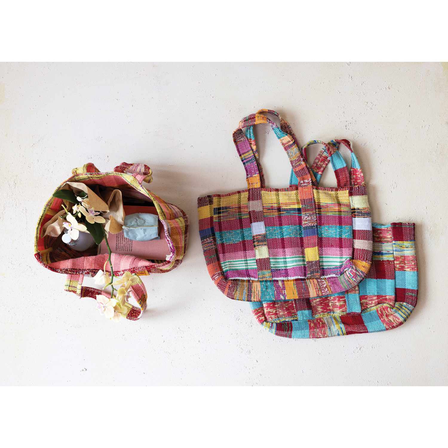 Woven Recycled Fabric Patchwork Tote Bag w/ Handles (Each One Will Vary)