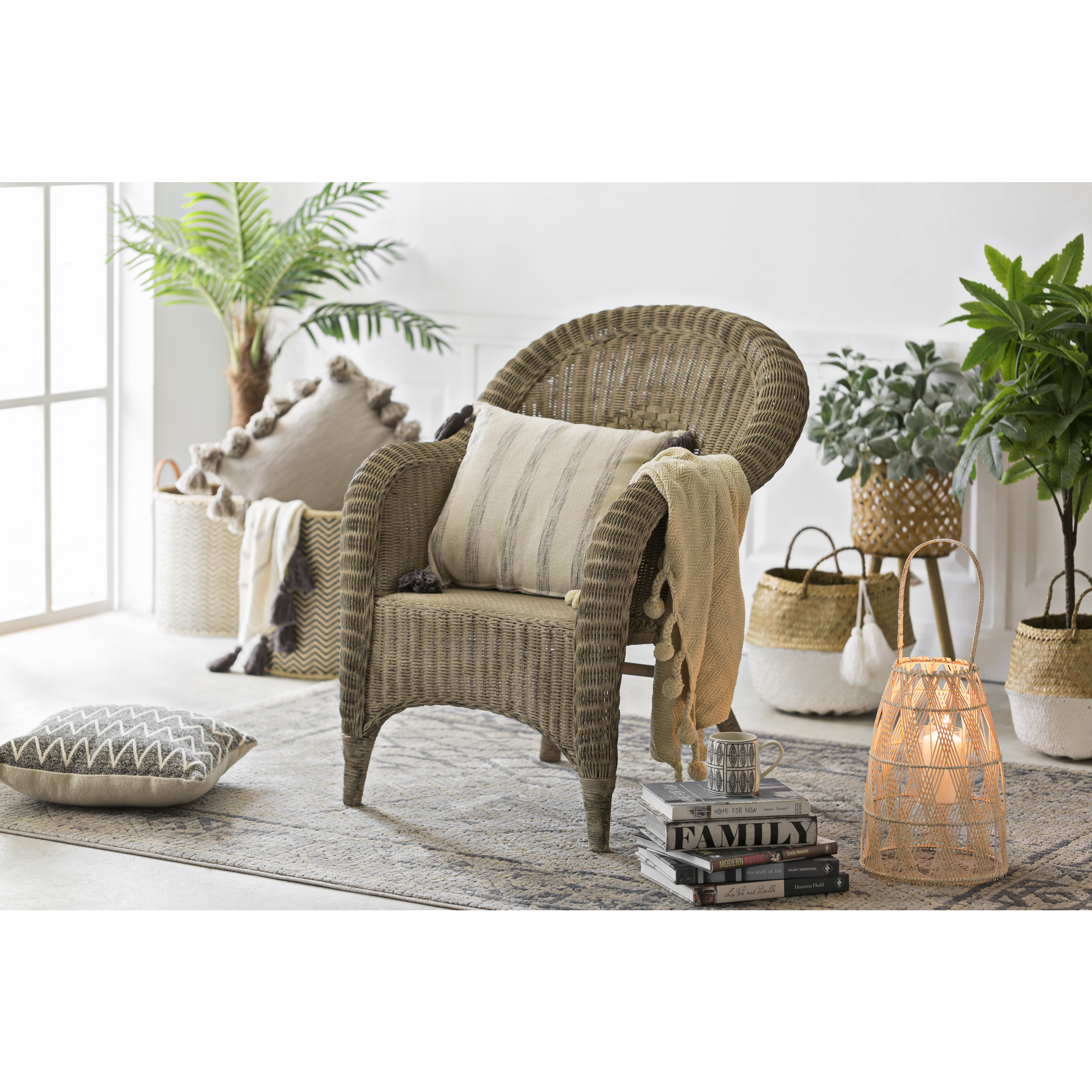 Cuddle up in this soft cotton throw. The fun pom-poms at the ends will look great when folded over the back or side of the couch. When folding, have both ends with pom-poms on the same side. Then make sure the top layer of pom-poms is folded shorter than the bottom showing them off in multiple layers (rows).