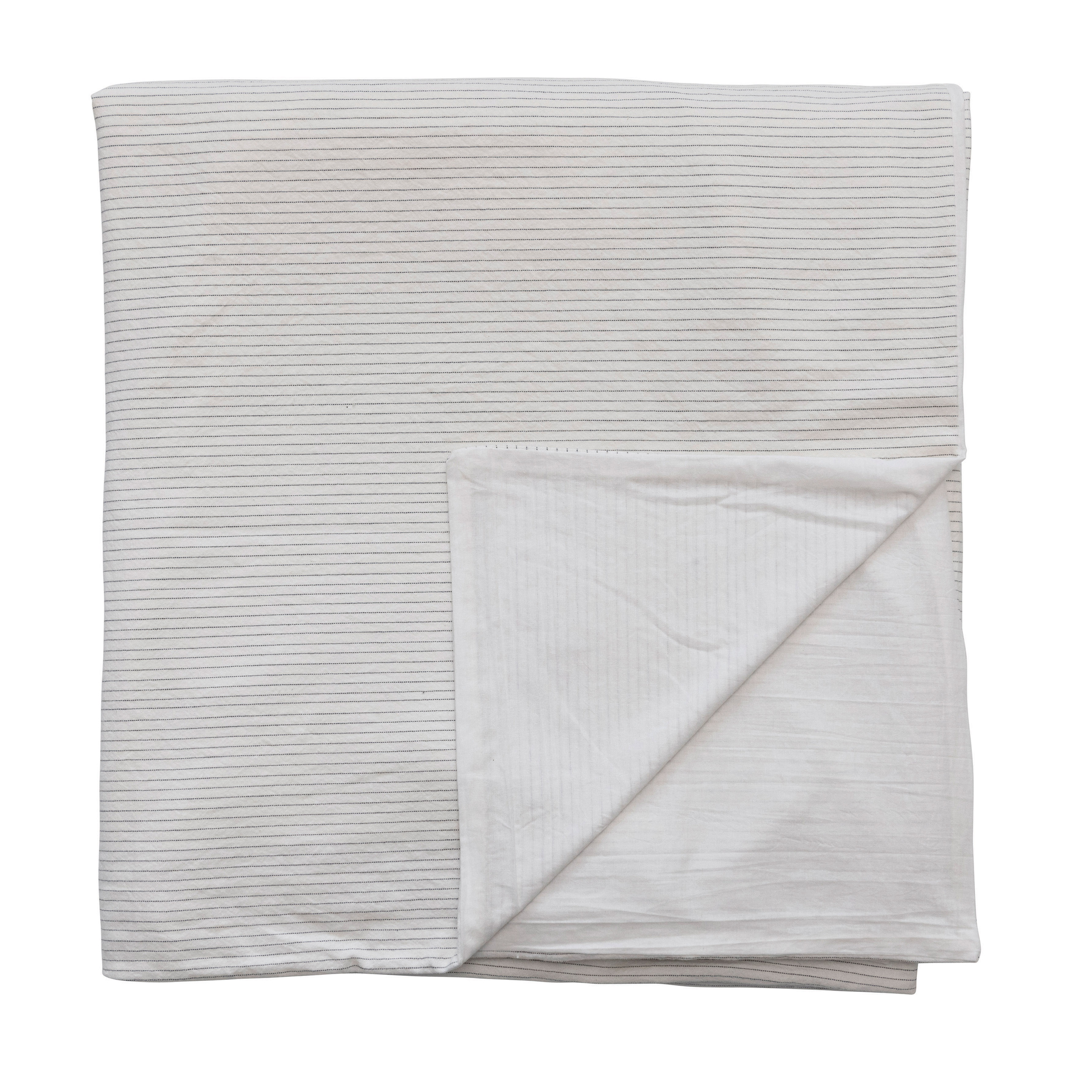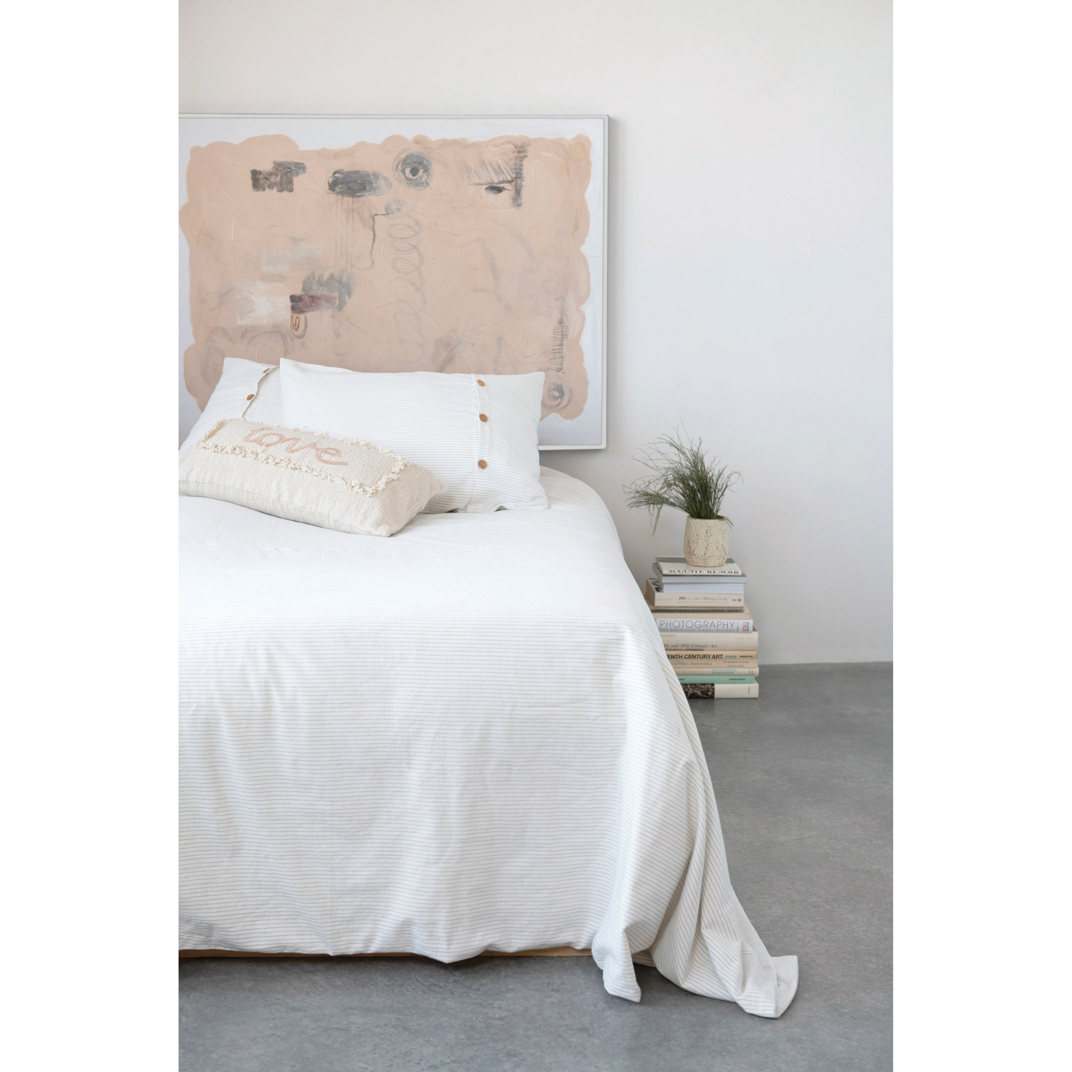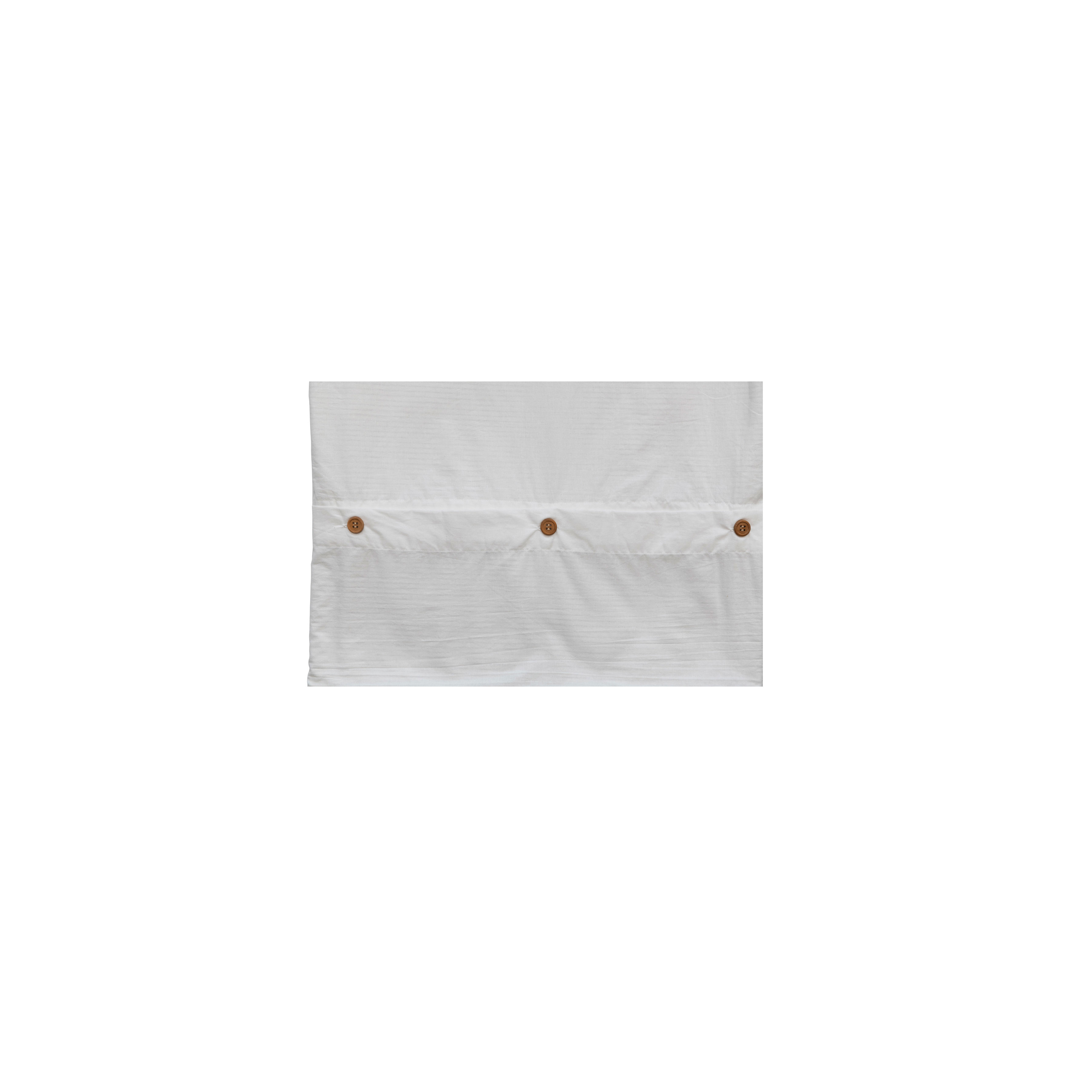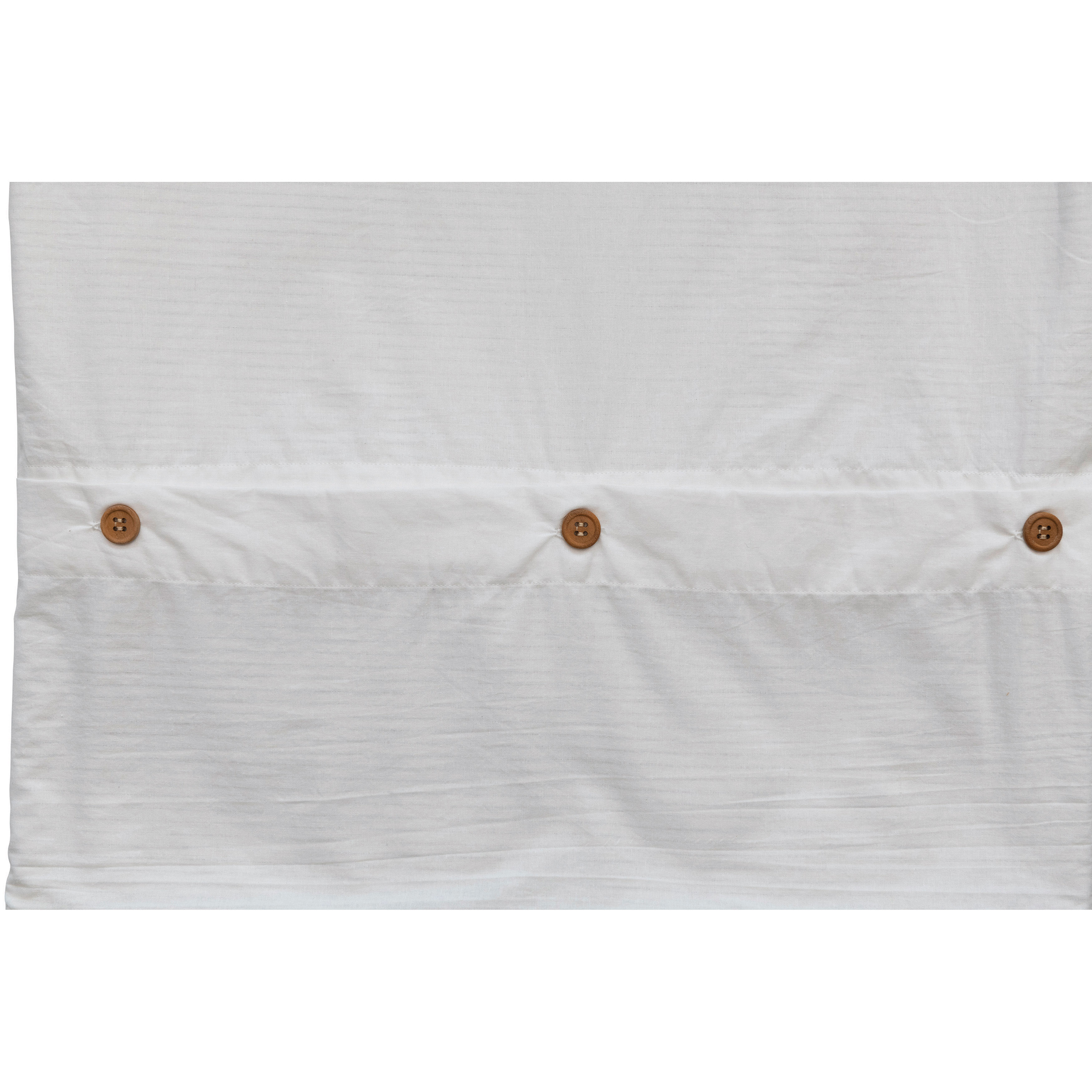White cotton double sided striped duvet cover and 2 matching shams; Machine Wash Warm, Gentle Cycle, Do Not Bleach, Warm Iron If Needed. Add a dash of sumptuous style to a bedroom with this luxurious cotton bed set. Made from 100% cotton. Curate a space that reflects your unique sense of style with intentionally designed home décor.