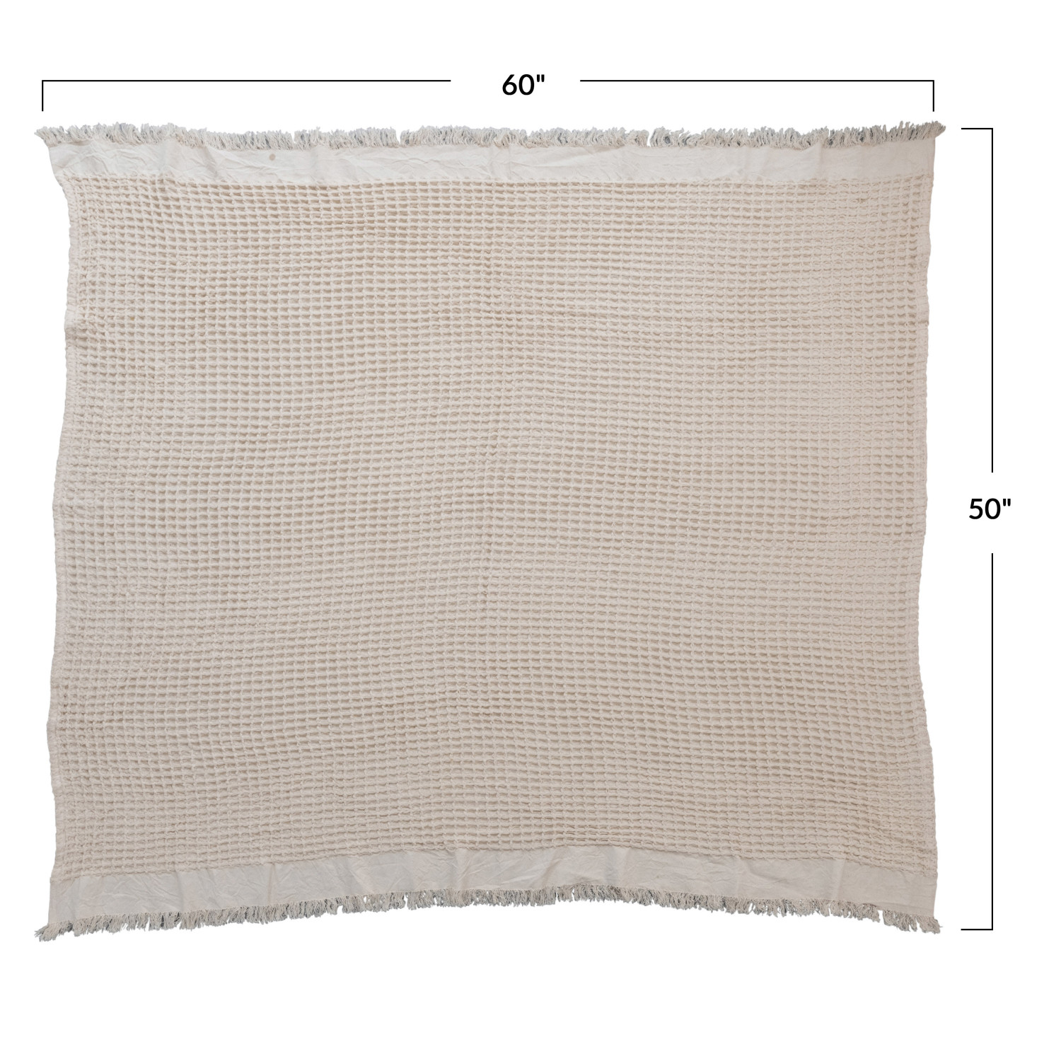 Catalog Name: 60"L x 50"W Cotton Waffle Weave Throw w/ Fringe, Natural