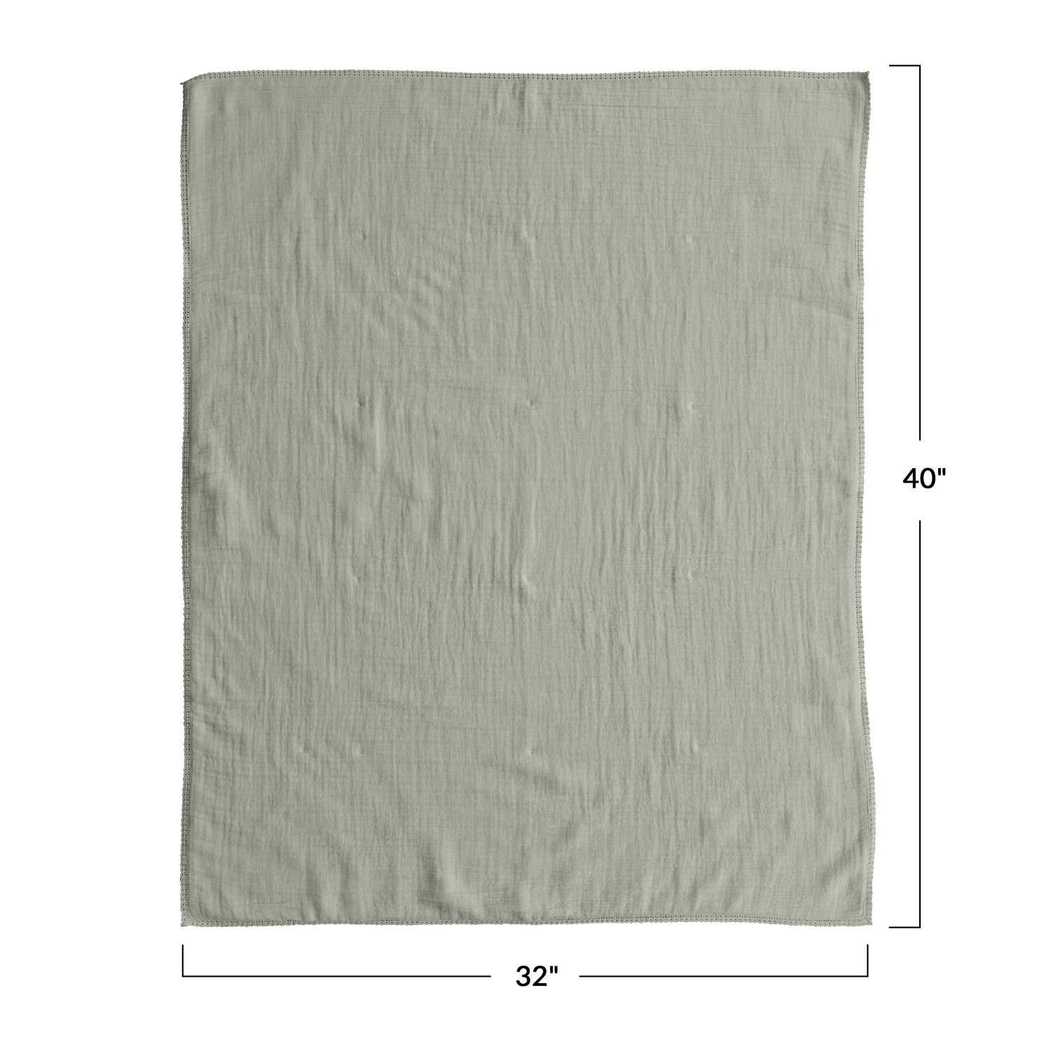 Catalog Name: 40"L x 32"W Cotton Double Cloth Baby Blanket w/ Trim in Bag, Green