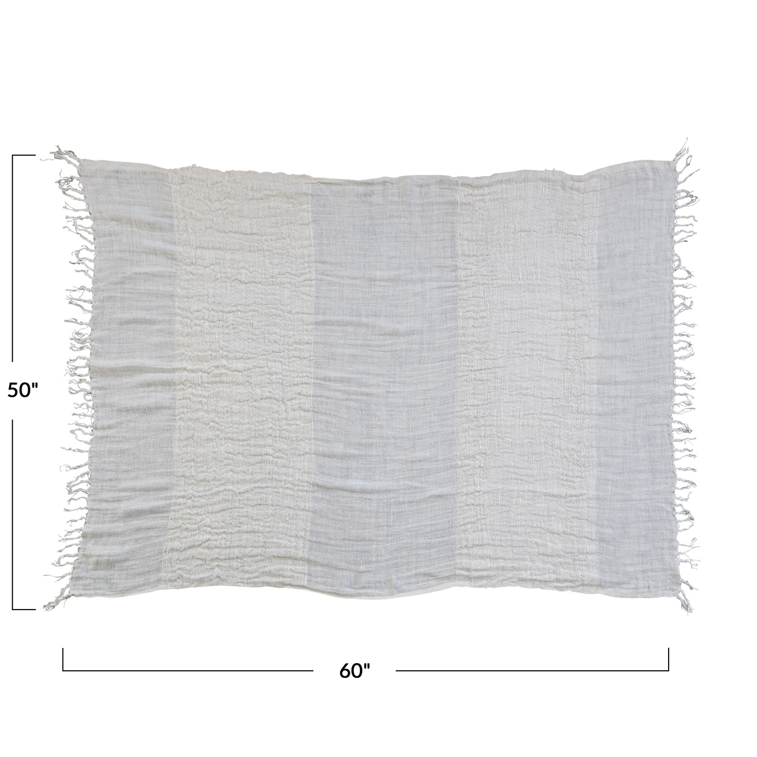 Catalog Name: 60"L x 50"W Woven Linen Throw w/ Stripes & Fringe, Cream Color & Natural