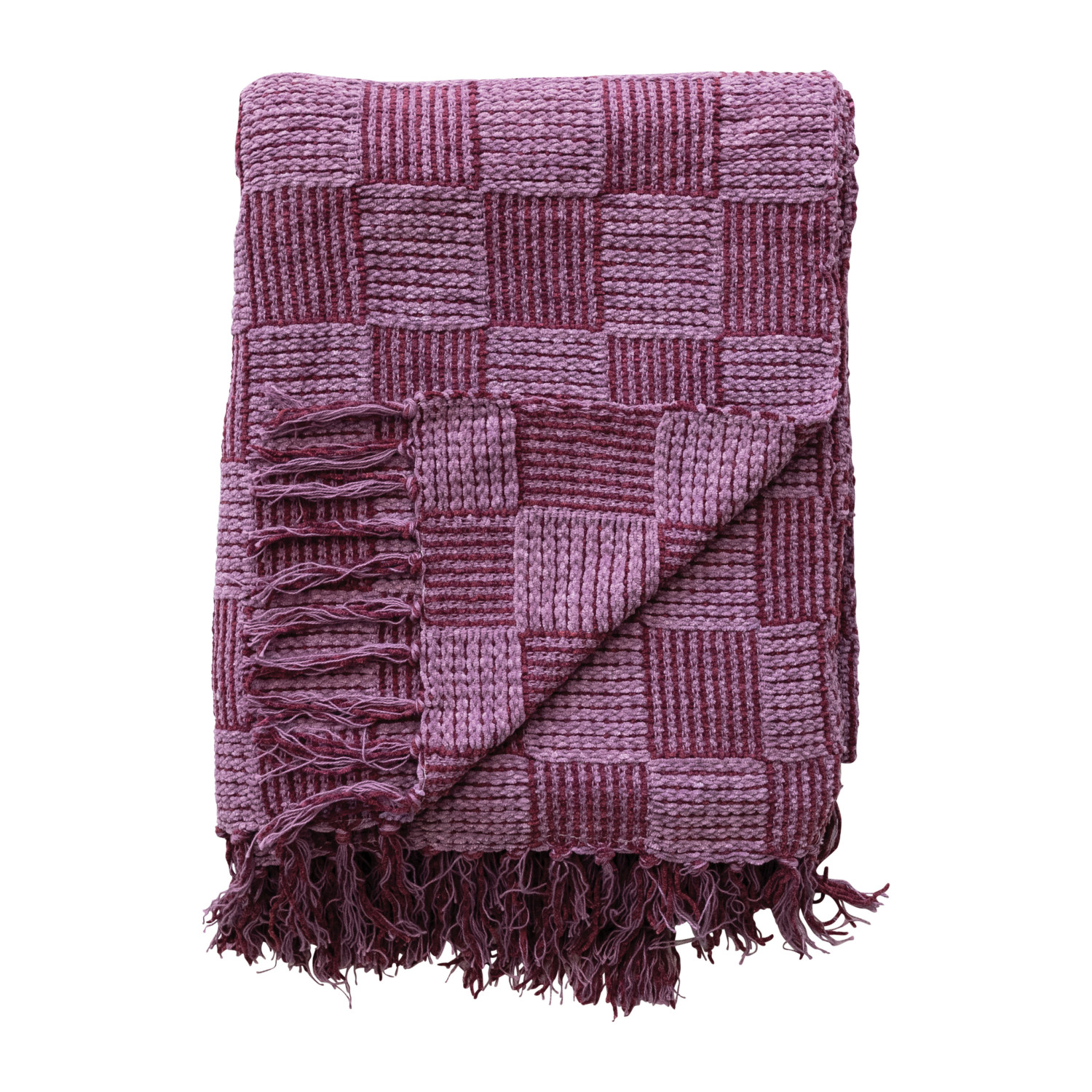 Catalog Name: 60"L x 50"W Woven Cotton Blend Chenille Throw w/ Check Pattern & Fringe, Berry Color & Pink