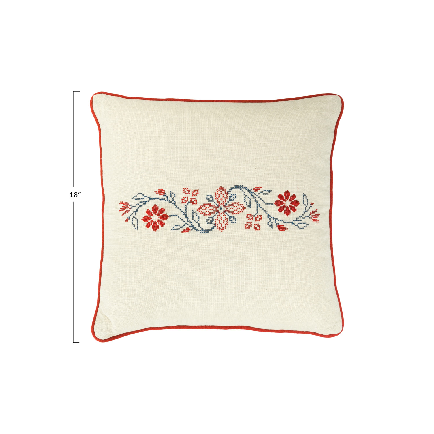 Catalog Name: 18" Square Cotton Floral Pillow w/ Embroidery, Multi Color