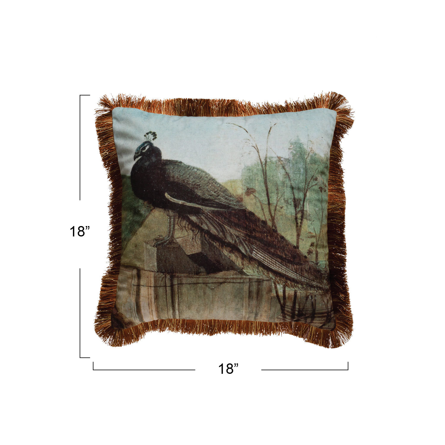 18" Fabric Pillow with Fringe & Peacock