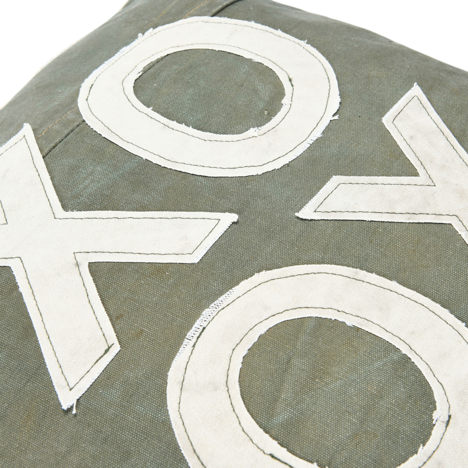 Catalog Name: 20" Square Recycled Cotton Canvas Pillow w/ Applique "XO" & Eyelash Fringe, Green & Natural