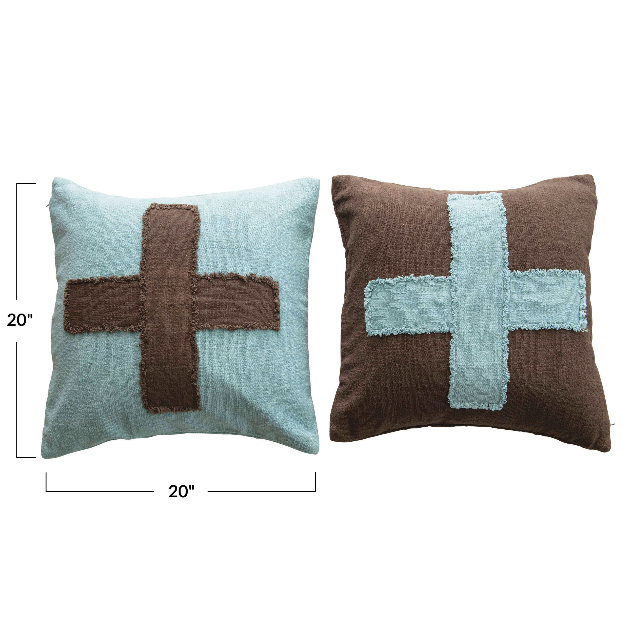 20" Cotton Slub Pillow with Swiss Cross, 2 Colors