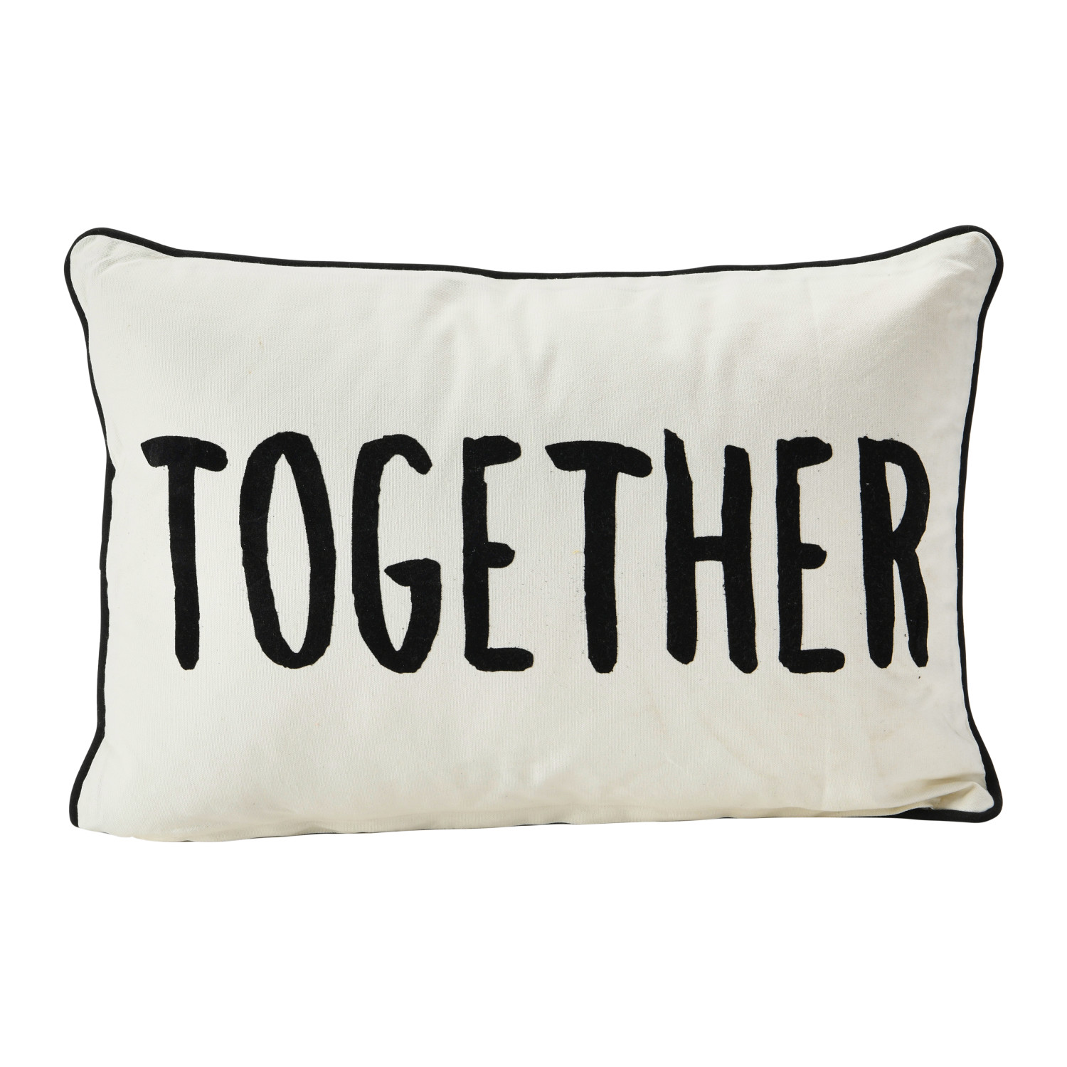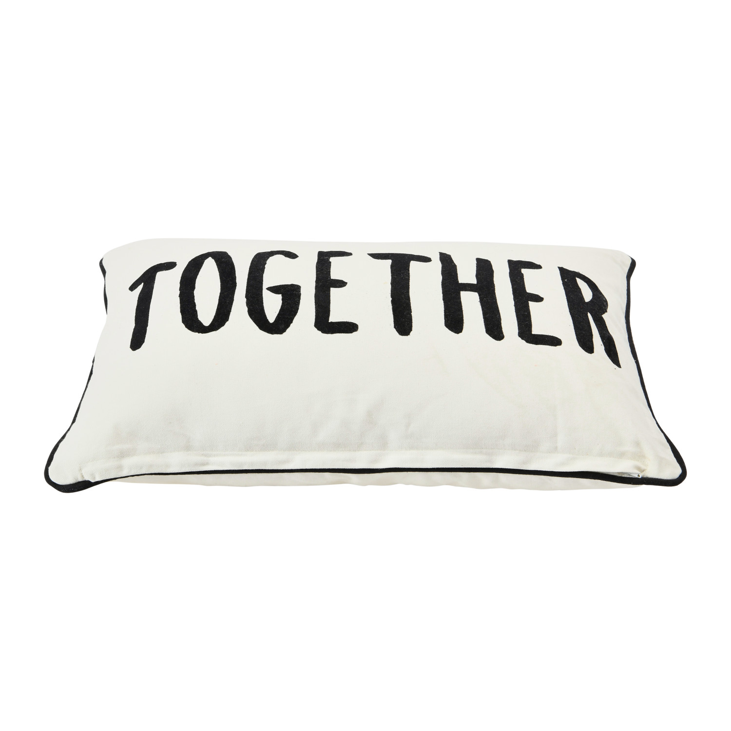 Catalog Name: 24"L x 16"H Two-Sided Cotton Lumbar Pillow w/ Piping & Applique "Better/Together", Cream Color & Black